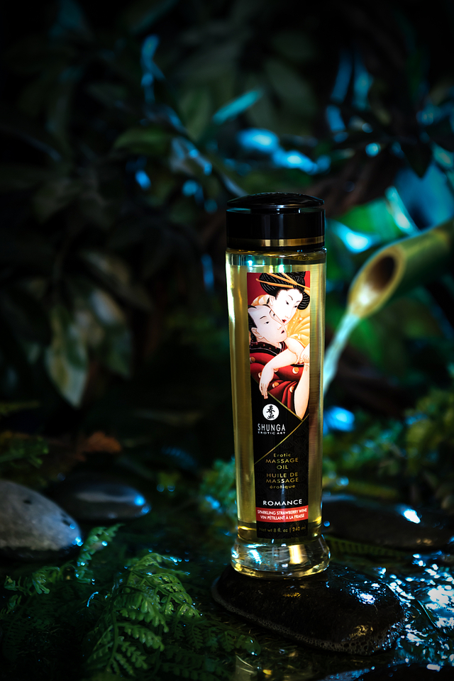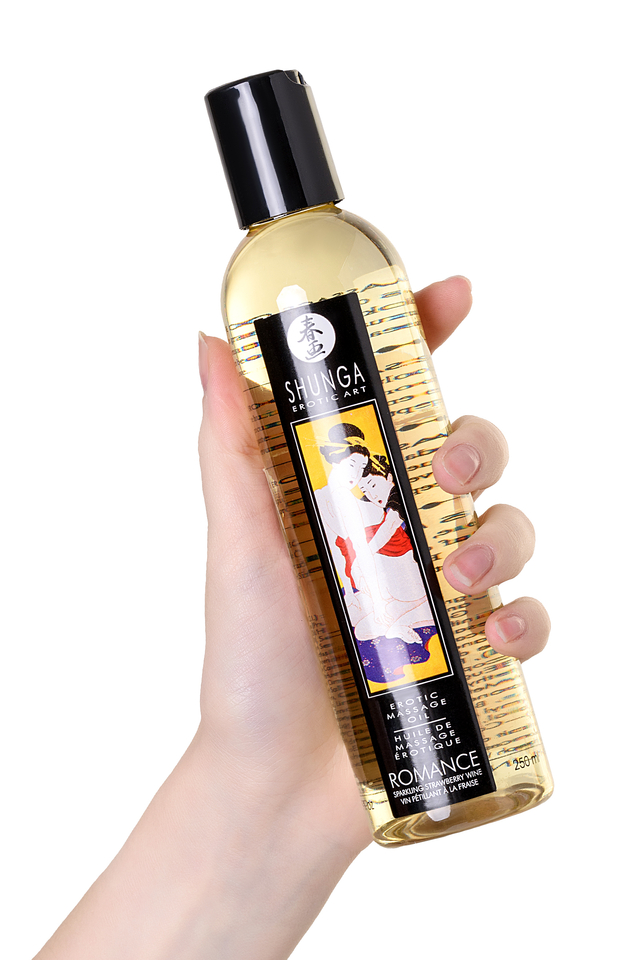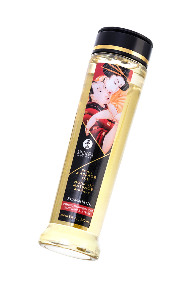 271008 Масло для массажа Shunga Romance, натуральное, возбуждающее, клубника и шампанское, 240 мл