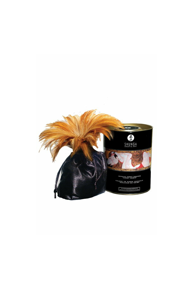 Съедобная пудра для тела Shunga помогает превратить даже самую скромную прелюдию в пиршество страсти. Волнующий аромат, великолепный вкус и изумительный возбуждающий эффект, который можно усилить с помощью входящего в комплект нежного перышка. Такое блюдо точно придётся по вкусу! Кстати, о вкусном: съедобная пудра для тела Shunga не содержит сахара. Она не только абсолютно безопасна для нежной кожи, но и не вредит фигуре. Пудра легко наносится, смывается водой, не оставляет после себя пятен. Может использоваться в качестве сухого дезодоранта в жаркое время.