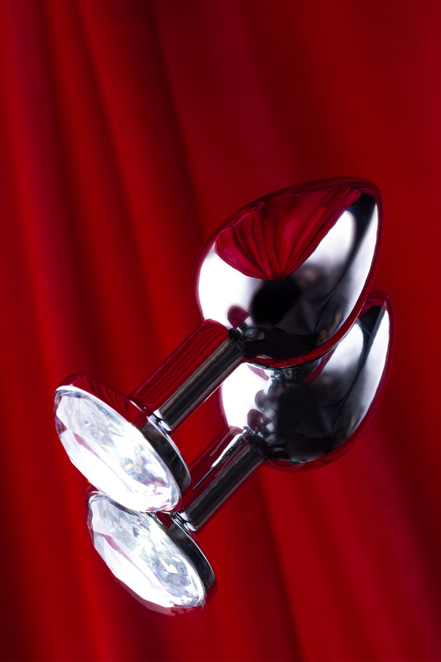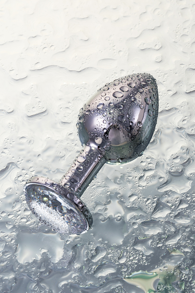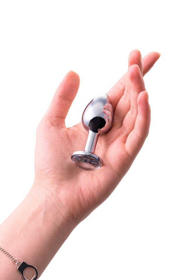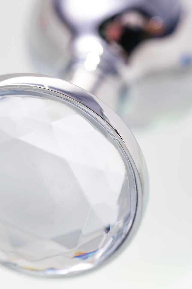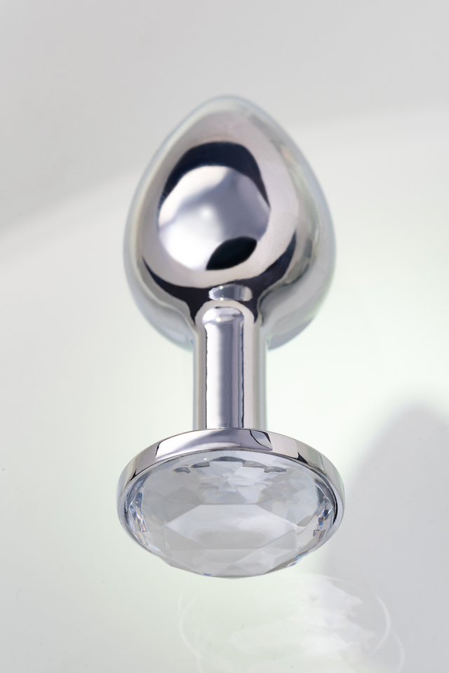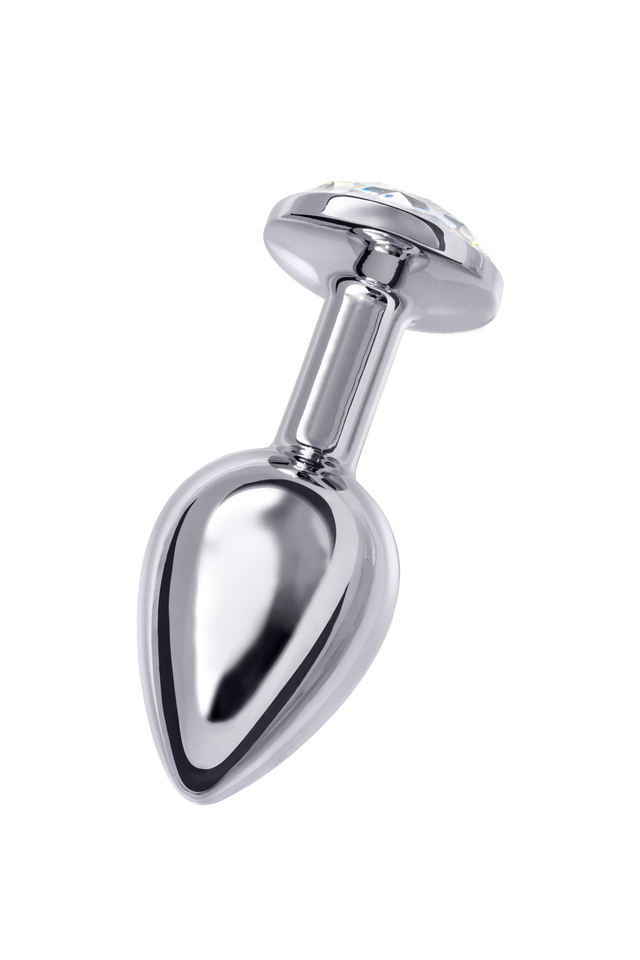 712001 Анальная втулка Metal by TOYFA, металл, серебряная, с белым кристаллом, 7,5 см, Ø 3 см, 145 г