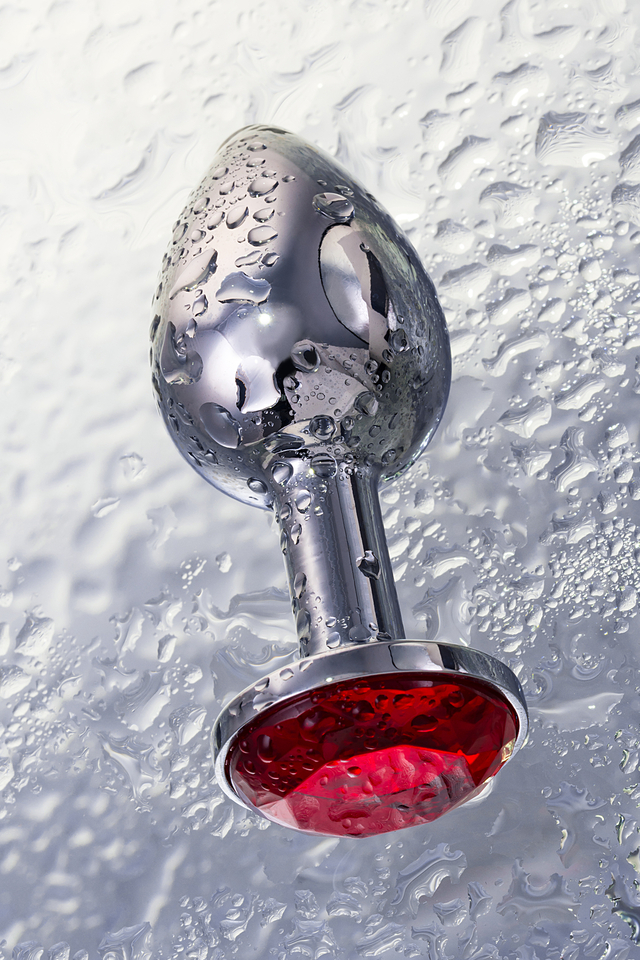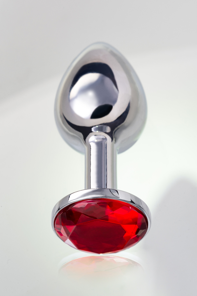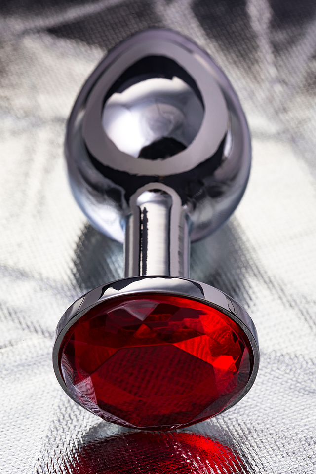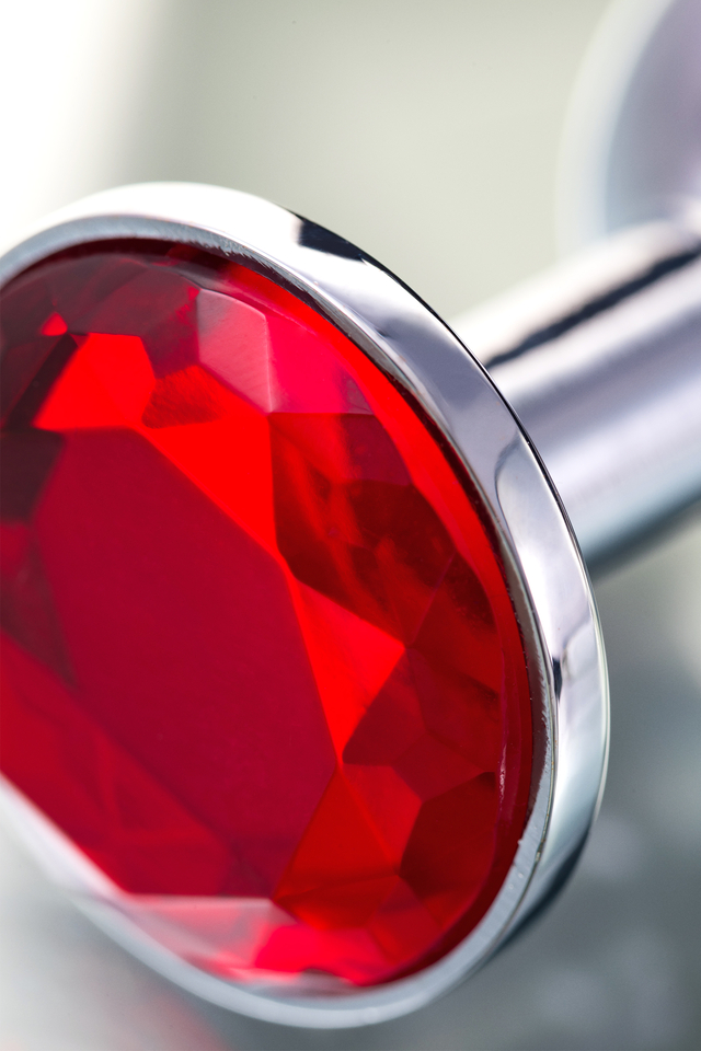 712002 Анальная втулка Metal by TOYFA, металл, серебряная, с рубиновым кристаллом, 7,5 см, Ø 3 см, 145 г