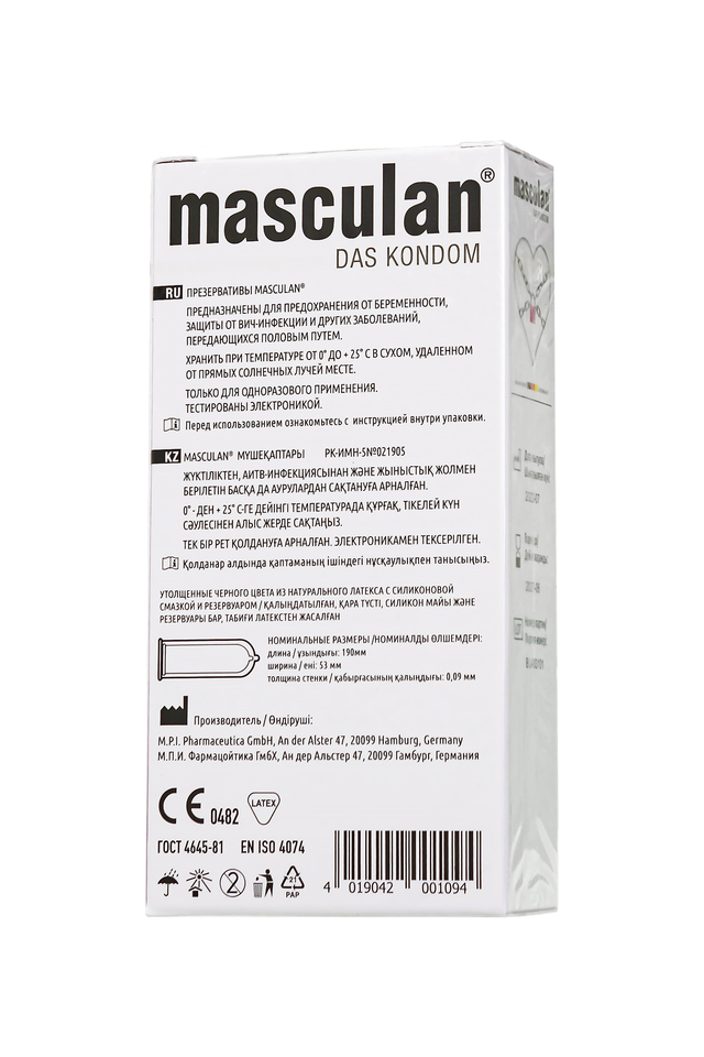 Ультрапрочные презервативы Masculan Ultra Strong сделаны из утолщенного латекса для супер защиты. С ними можно чувствовать себя в безопасности даже на длительной дистанции и при анальном сексе. Черный цвет подчеркивает силу и мощь, чтобы ничего не мешало в покорении новых вершин. Наслаждайтесь любовью в самых различных ее проявлениях, не лишая себя безопасности. Masculan – это презервативы премиум-класса, разработанные в Германии с соблюдением высочайших стандартов качества и дизайна. Немецкое производство, высококачественное сырье и электронное 6-ти ступенчатое тестирование каждого презерватива обеспечивают безопасность и надежность. Утолщенный латекс со стенкой 0,08 мм Черный цвет 100% натуральный каучуковый латекс Анатомическая форма с накопителем Гипоаллергенная обильная силиконовая смазка премиум-качества