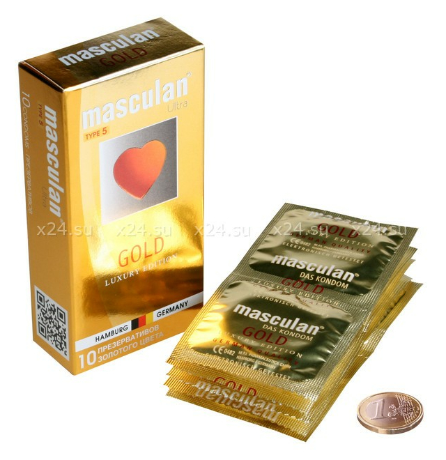 Masculan Gold – эффектные презервативы золотого цвета с нежным ароматом ванили. Необычные презервативы для особенных моментов по-прежнему обеспечивают надежную защиту, чтобы все внимание было сконцентрировано на удовольствиях. Экстравагантный презерватив из натурального латекса с золотым напылением завораживает и подчеркивает красоту тела. Каждое интимное свидание будет запоминающимся и чувственным. Masculan Gold – для всех видов любви. Masculan – это презервативы премиум-класса, разработанные в Германии с соблюдением высочайших стандартов качества и дизайна. Немецкое производство, высококачественное сырье, и электронное 6-ти ступенчатое тестирование каждого презерватива обеспечивают безопасность и надежность. Золотое напыление и аромат ванили 100% натуральный каучуковый латекс Цилиндрическая форма с накопителем Гипоаллергенная силиконовая смазка премиум-качества Толщина стенки – 0,05 мм
