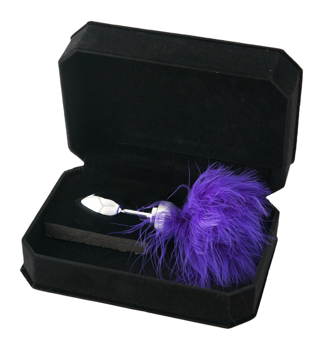 712020 Анальная втулка Metal by TOYFA, металл, серебряная, с фиолетовой опушкой, 17 см, Ø 2,9 см, 165 г