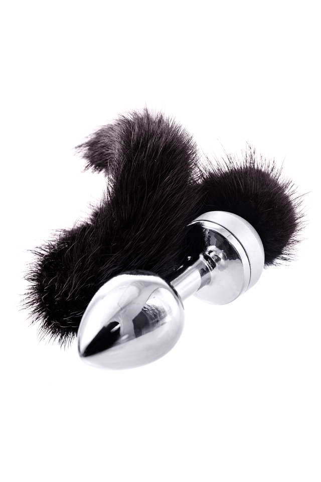 712021 Анальная втулка Metal by TOYFA, металл, серебряная, с черным хвостом, 32 см, Ø 2,9 см, 175 г
