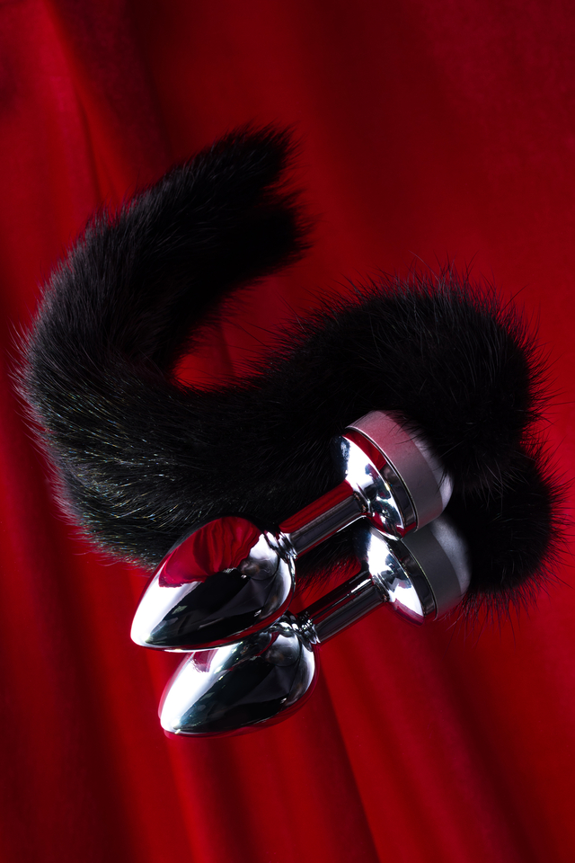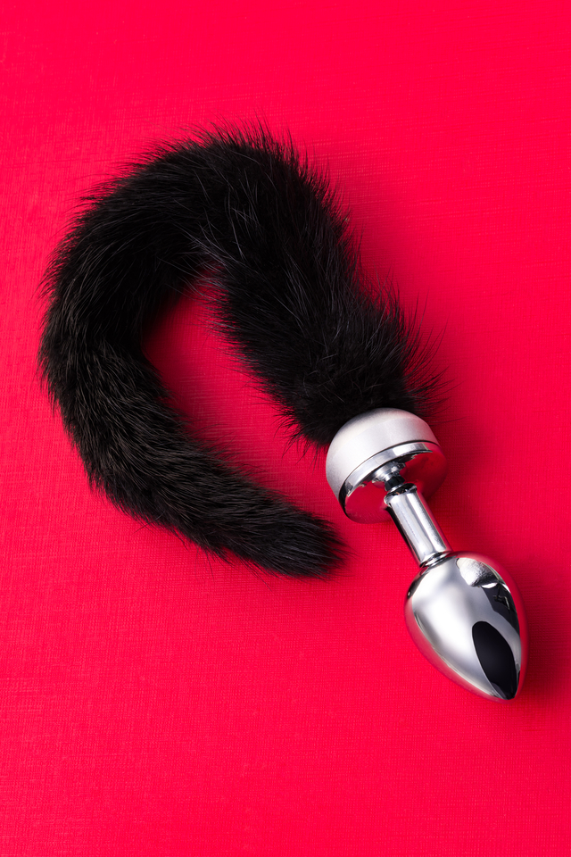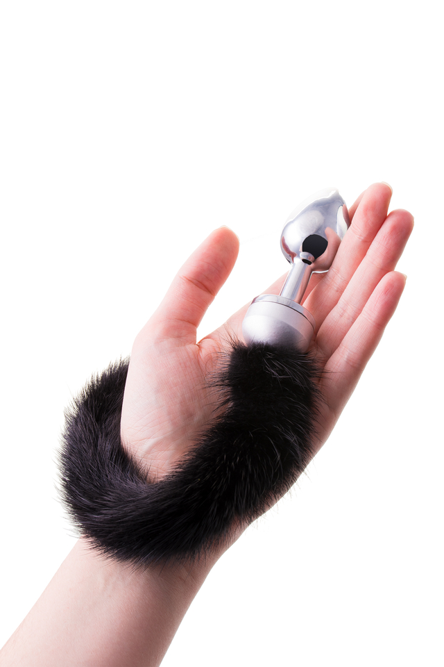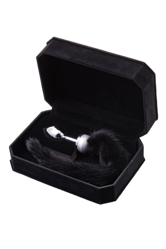 Анальная втулка маленькая с черным норковым хвостом в коробке. Длина хвоста ок.24см.