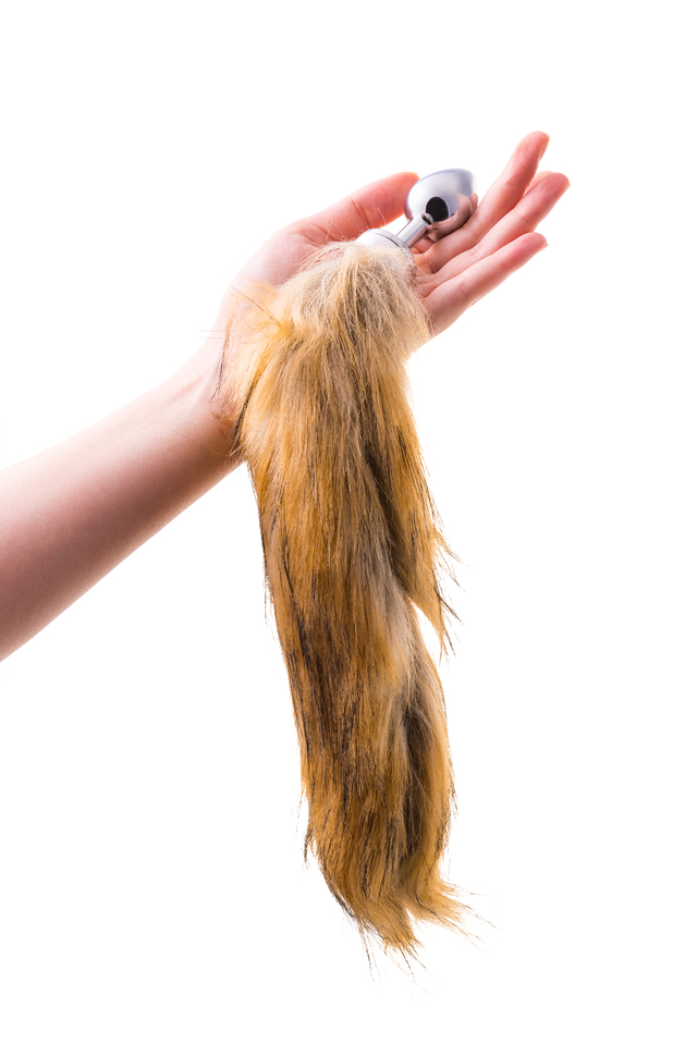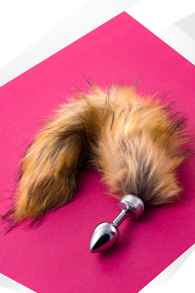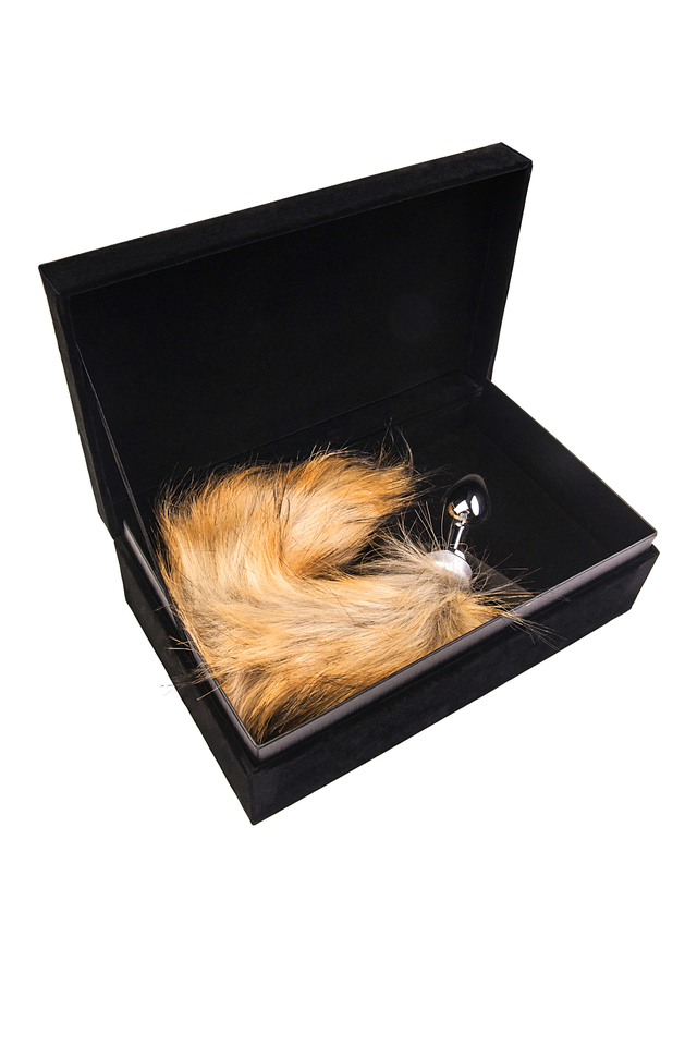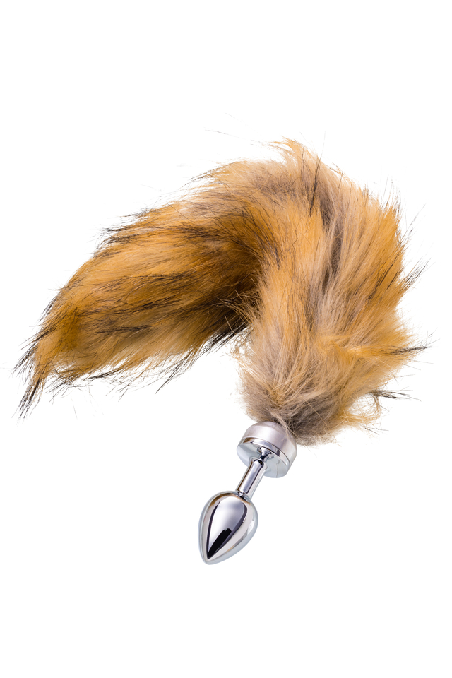 712023 Анальная втулка Metal by TOYFA, металл, серебряная, с большим рыжим хвостом, 37 см, Ø 2,9 см, 195 г
