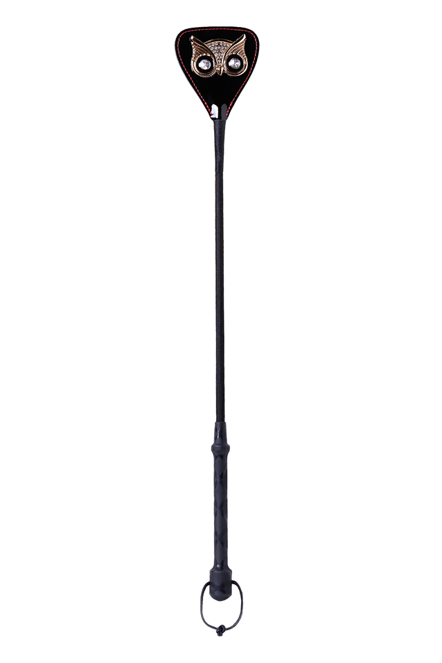 Стек 55 см со шлепком из лакированной кожи и украшением в виде головы совы выглядит очень стильно. Но очаровывающий внешний вид этого приспособления не должен вводить в заблуждение — аксессуар предназначен для умеренных и сильных воздействий. Конечно, им можно и нежно поглаживать партнёра. Или использовать для антуража в ролевых играх. Этот стек справится с любой задачей и выведет на новый эмоциональный уровень!