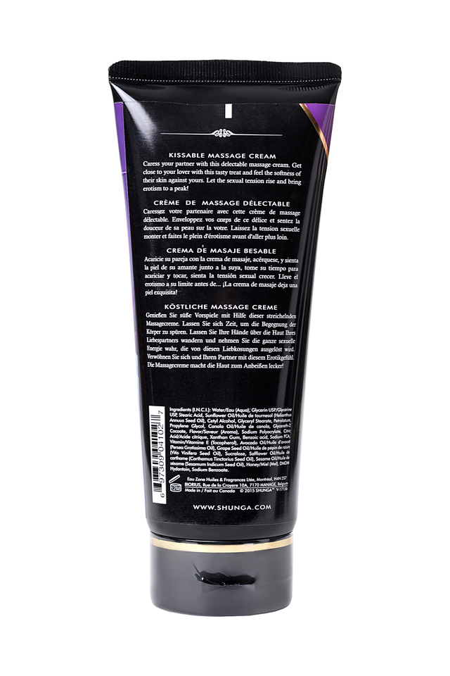 Шелковистая текстура съедобного массажного крема даже во время интенсивной близости, сохраняет на коже восхитительный вкус, не оставляя никакого послевкусия. • Гладкий шелковистый, оставляет на коже чувство свежести. • Восхитительный вкус. • Маслянистая текстура. • Легко и долго скользит. • Съедобен. • Не оставляет жирных пятен. Не рекомендуется в качестве персонального лубриканта. Только для наружного применения.