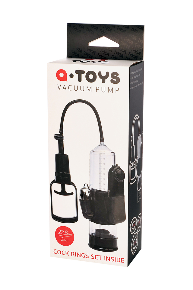 A-Toys Vacuum pump — серия помп, созданная для мужчин, которые стремятся к новым победам и точно знают чего хотя. Регулярное применение помп Atoys способствует увеличению размеров полового члена и усиливает эрекцию. Высокое качество материалов, используемых при производстве помпы, сделают применение изделия приятным и безопасным. Помпа оснащена мощным насосом, а также механизмом вибрации, которое крепится к помпе с помощью эластичного материала с кармашком для виброяичка и управляется выносным пультом.
