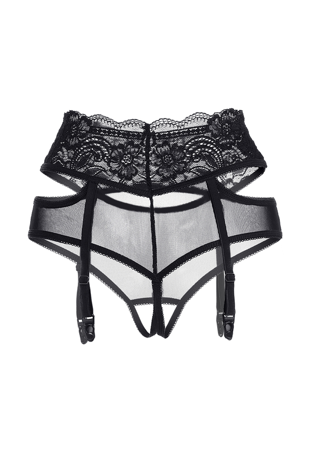 Эротические трусики-пояс для чулок Erolanta® Marianne из эластичной сетки со вставками кружева, с декоративными вырезами. Имитация пояса со свободным ажурным краем. Высокая посадка. Регулируемые пажи. *Допускается замена кружева на аналогичное. Чулки в комплект не входят. На видео трусики-пояс Erolanta® Marianne дополнены идеально сочетающимся бралеттом Erolanta® Marisa.