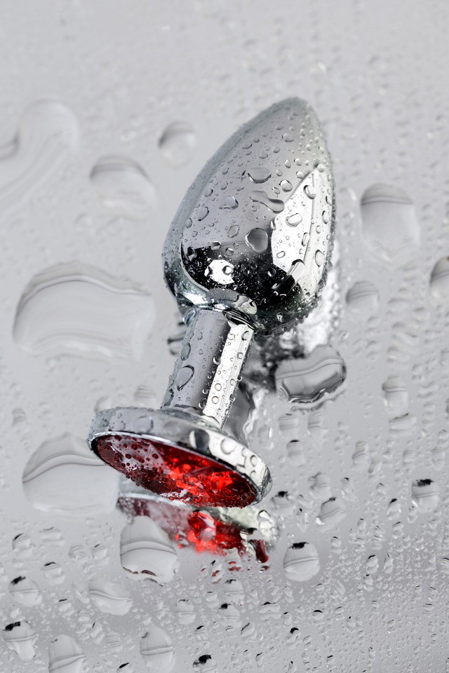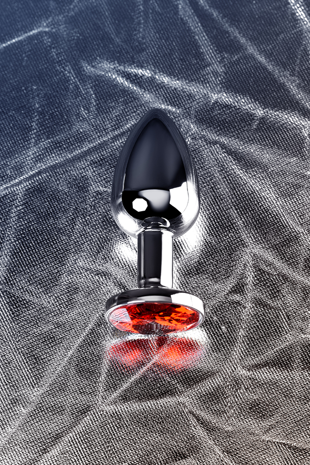 717010-9 Анальная втулка Metal by TOYFA, металл, серебряная, с красным кристаллом, 7,1 см, Ø 2,7 см, 150 г