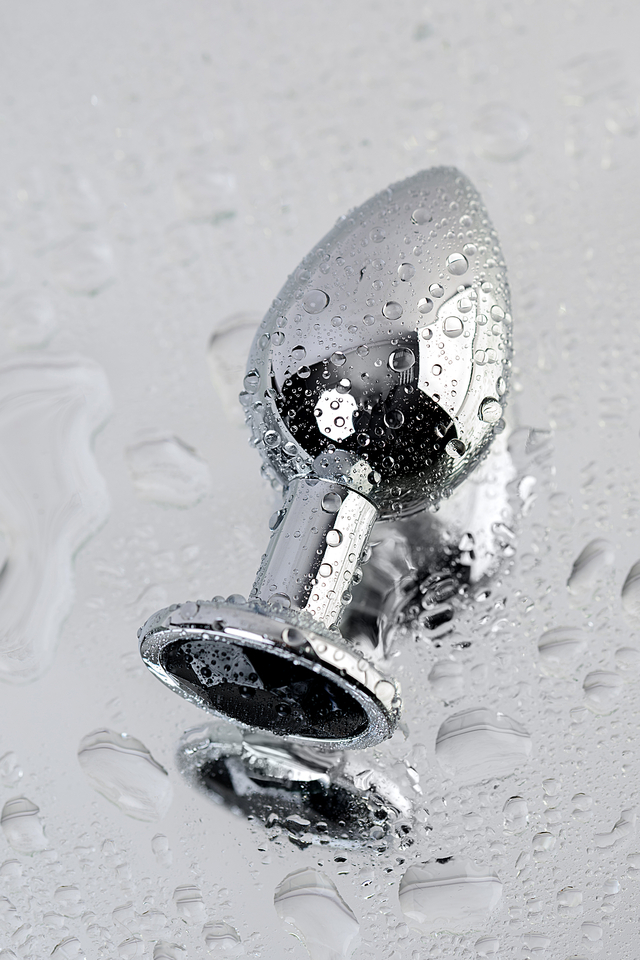 717011-5 Анальная втулка Metal by TOYFA, металл, серебряная, с чёрным кристаллом, 8,1 см, Ø 3,4 см