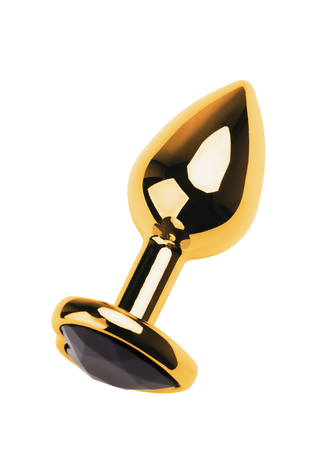 717018-135 Анальная втулка Metal by TOYFA, металл, золотая, с чёрным кристаллом, 9,5 см, Ø 4 см, 150 г