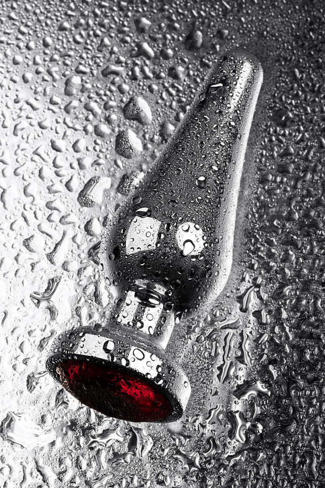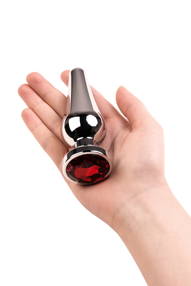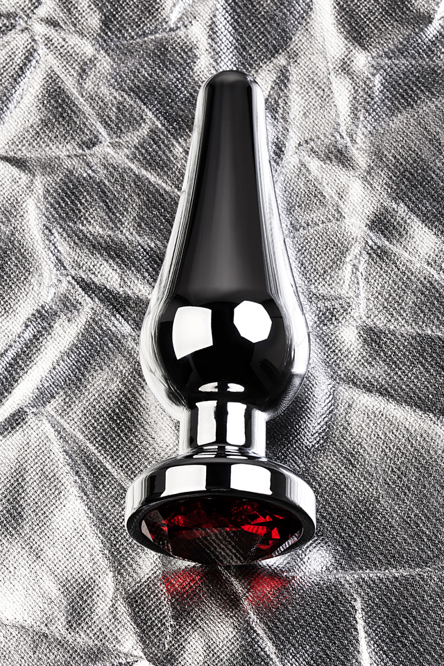 717051-9 Анальная втулка Metal by TOYFA, металл, серебряная, с красным кристаллом,12 см, Ø 4 см, 195 г