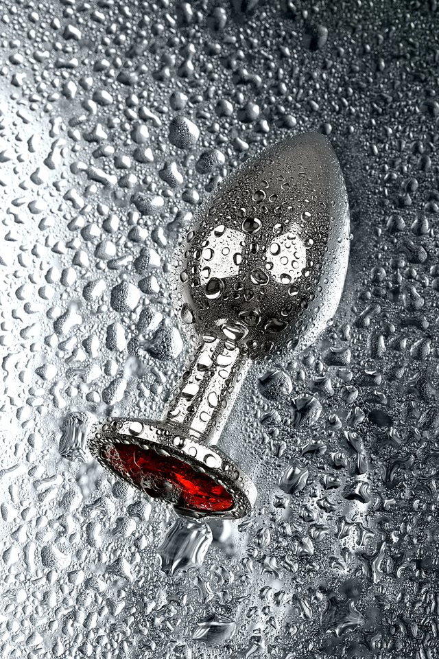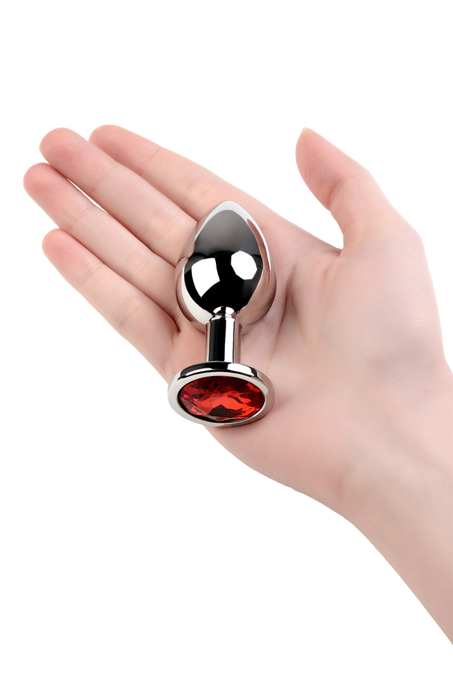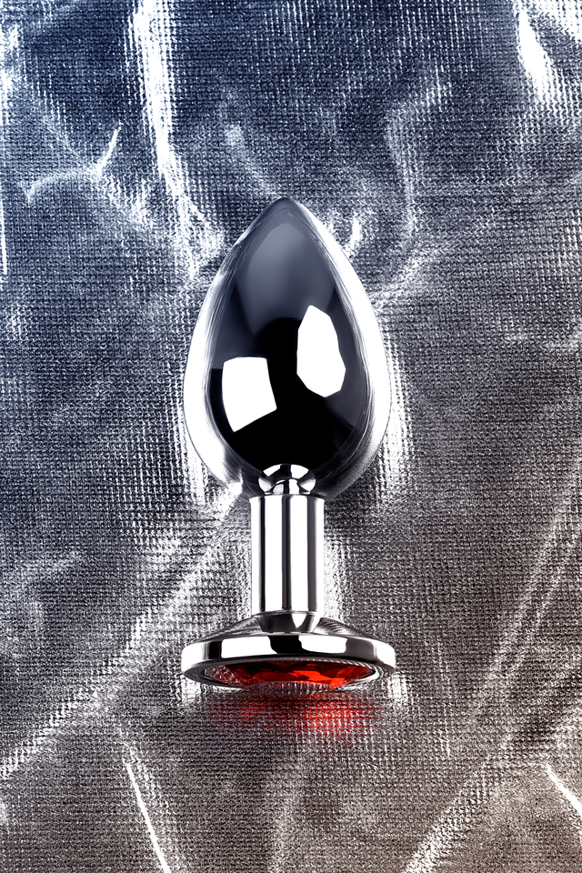 717094-9 Анальная втулка Metal by TOYFA, металл, серебряная, с красным кристаллом, 8 см, Ø 3,5 см, 265 г
