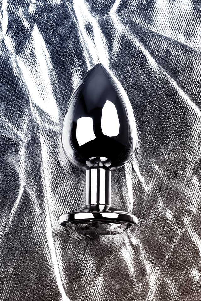 717095-10 Анальная втулка Metal by TOYFA, металл, серебряная, с кристаллом цвета алмаз, 9,2 см, Ø 4 см, 425 г