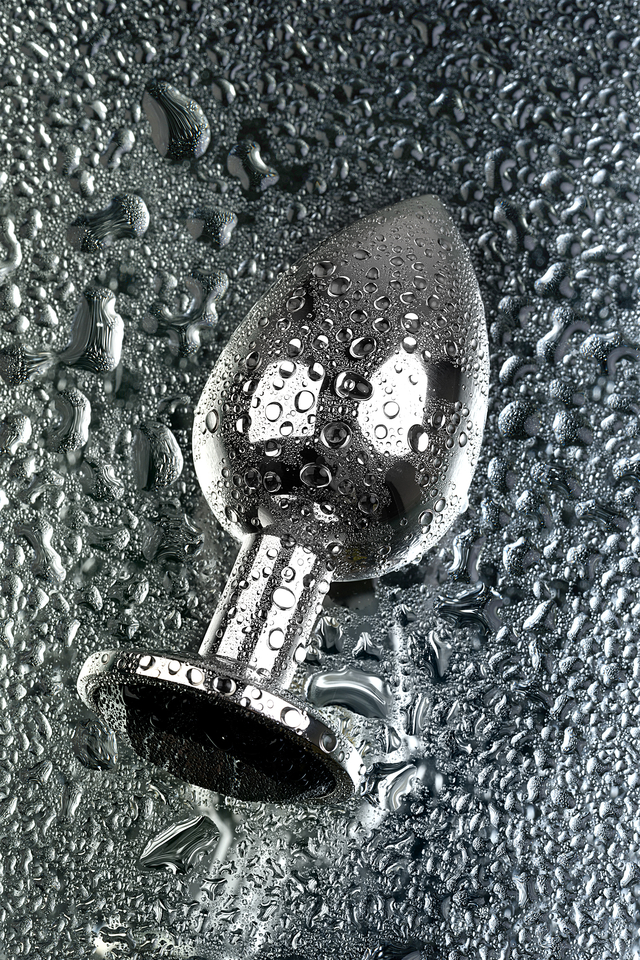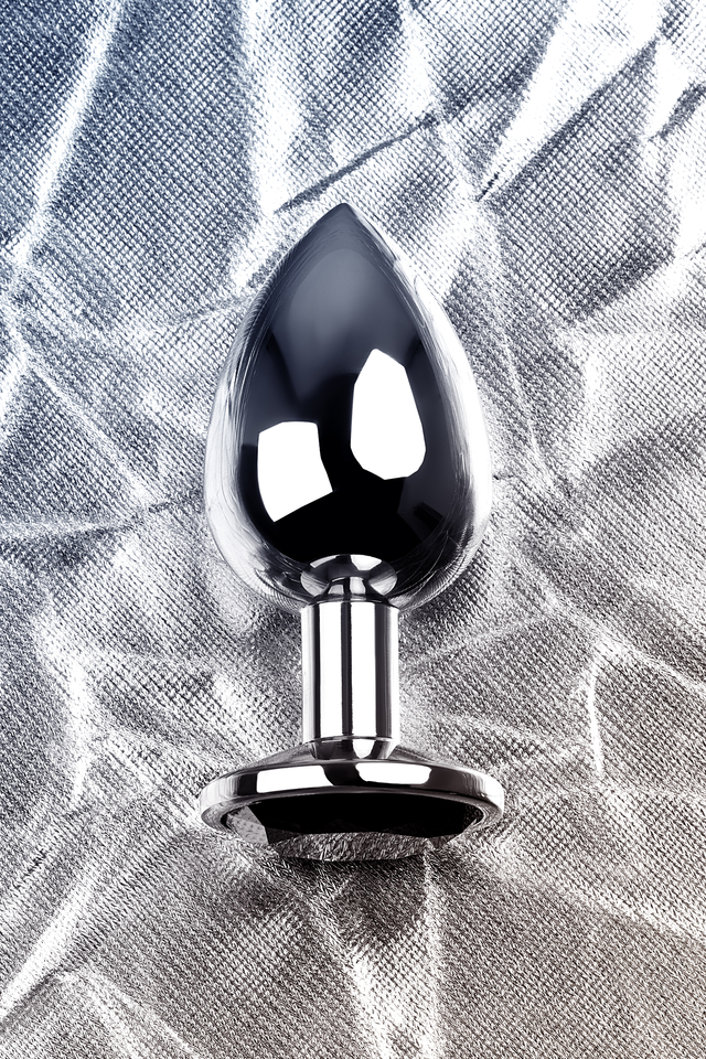 717095-5 Анальная втулка Metal by TOYFA, металл, серебряная, с чёрным кристаллом, 9,2 см, Ø 4 см, 430 г