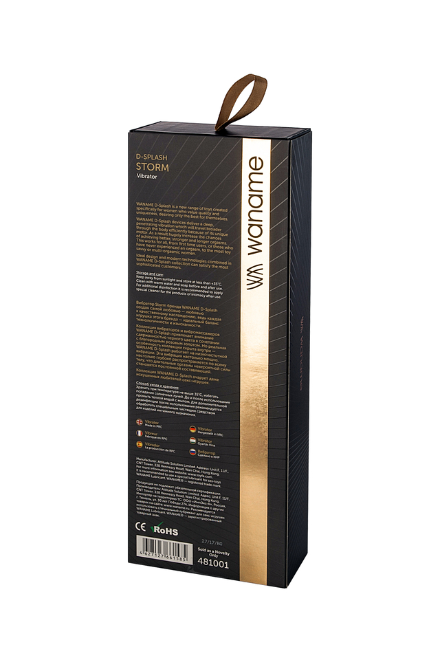481001 Нереалистичный вибратор WANAME D-SPLASH Storm, силикон, черный, 22,5 см
