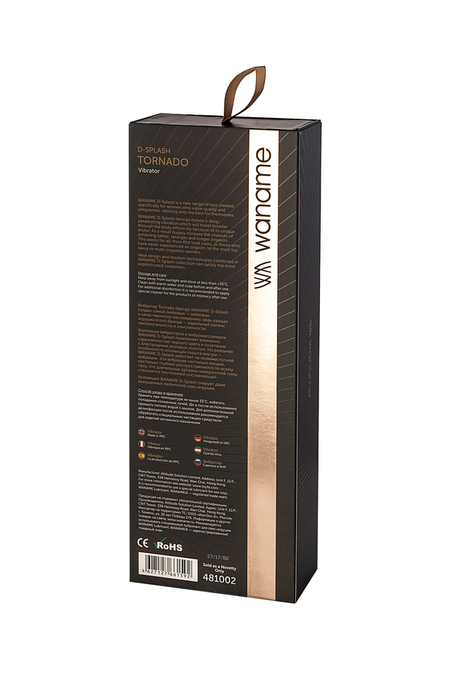 481002 Нереалистичный вибратор WANAME D-SPLASH Tornado, силикон, черный, 25 см