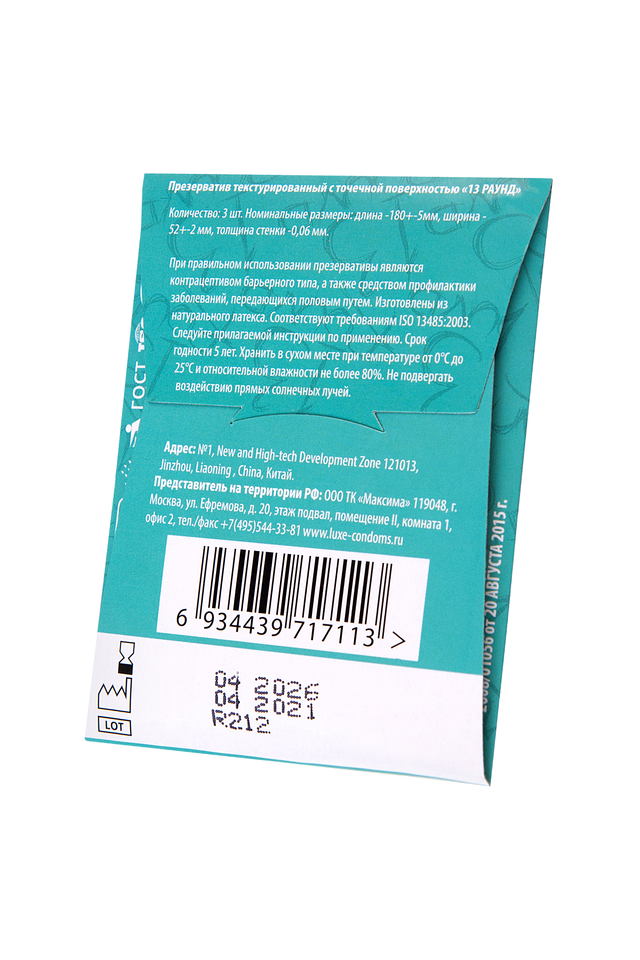 Удивите партнера и порадуйте себя новыми ощущениями! Качественное удовольствие с презервативами LUXE Тринадцатый раунд – название говорит само за себя. Три латексных презерватива с накопителем и смазкой в яркой фирменной упаковке. Рельеф с точками для наивысшего наслаждения и дополнительной стимуляции, чтобы выйти победителем из любого раунда. Наслаждаться процессом, не беспокоясь о безопасности, легко с презервативами LUXE Тринадцатый раунд. Необычная упаковка с креативным дизайном и многообещающим названием также призвана сделать вашу близость незабываемой. Качественный латекс Силиконовая смазка Рельефная текстура – точки Протестировано электроникой Креативная упаковка “конверт” Длина 180 мм Ширина 52 мм Толщина стенок 0,06 мм Количество в упаковке – 3 шт