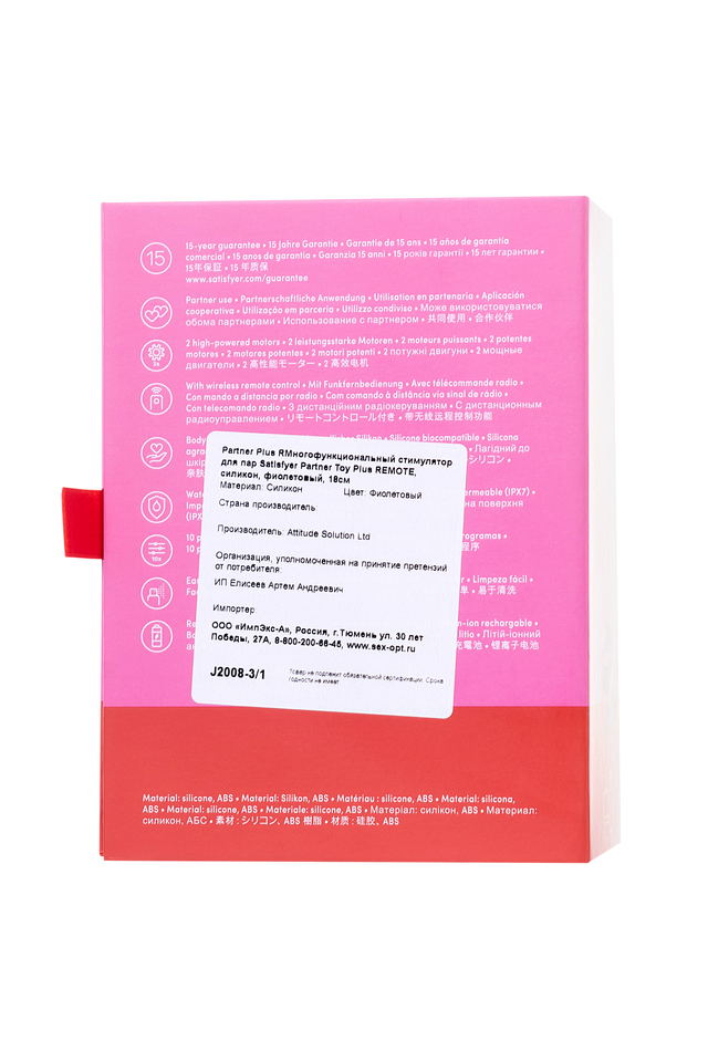 J2008-3-01 Многофункциональный стимулятор для пар Satisfyer Partner Toy REMOTE, силикон, фиолетовый, 18 см.