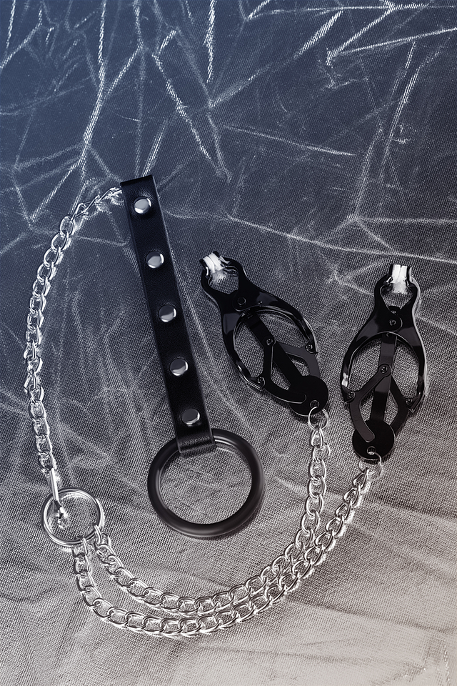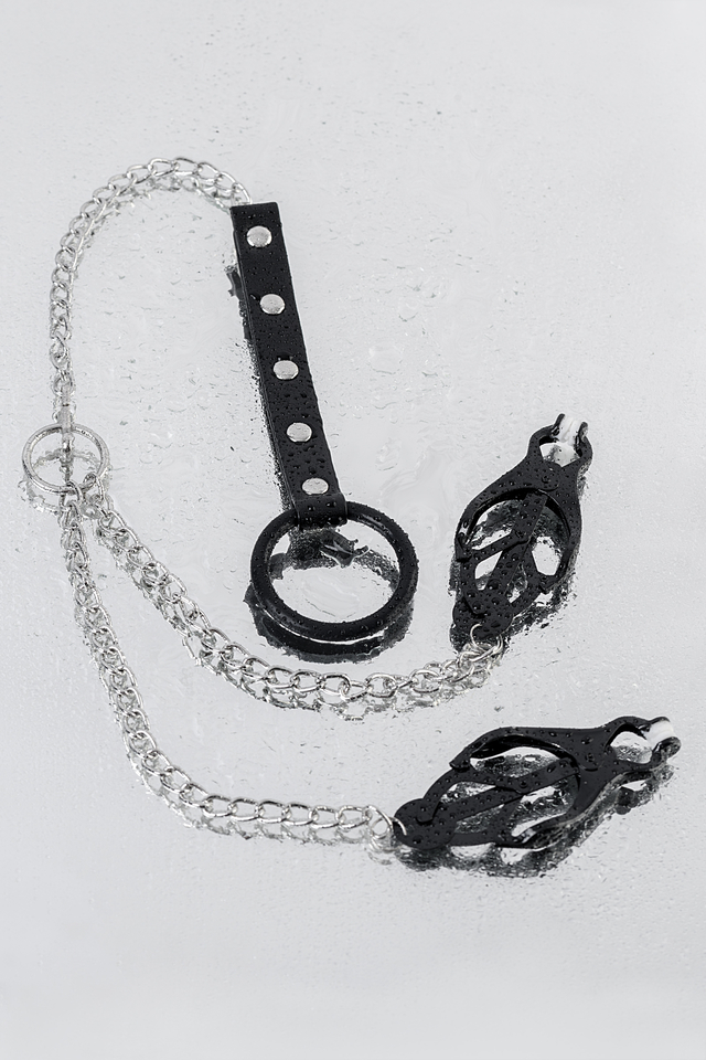 712050 Зажимы для сосков с кольцом для пениса, TOYFA Metal, черные