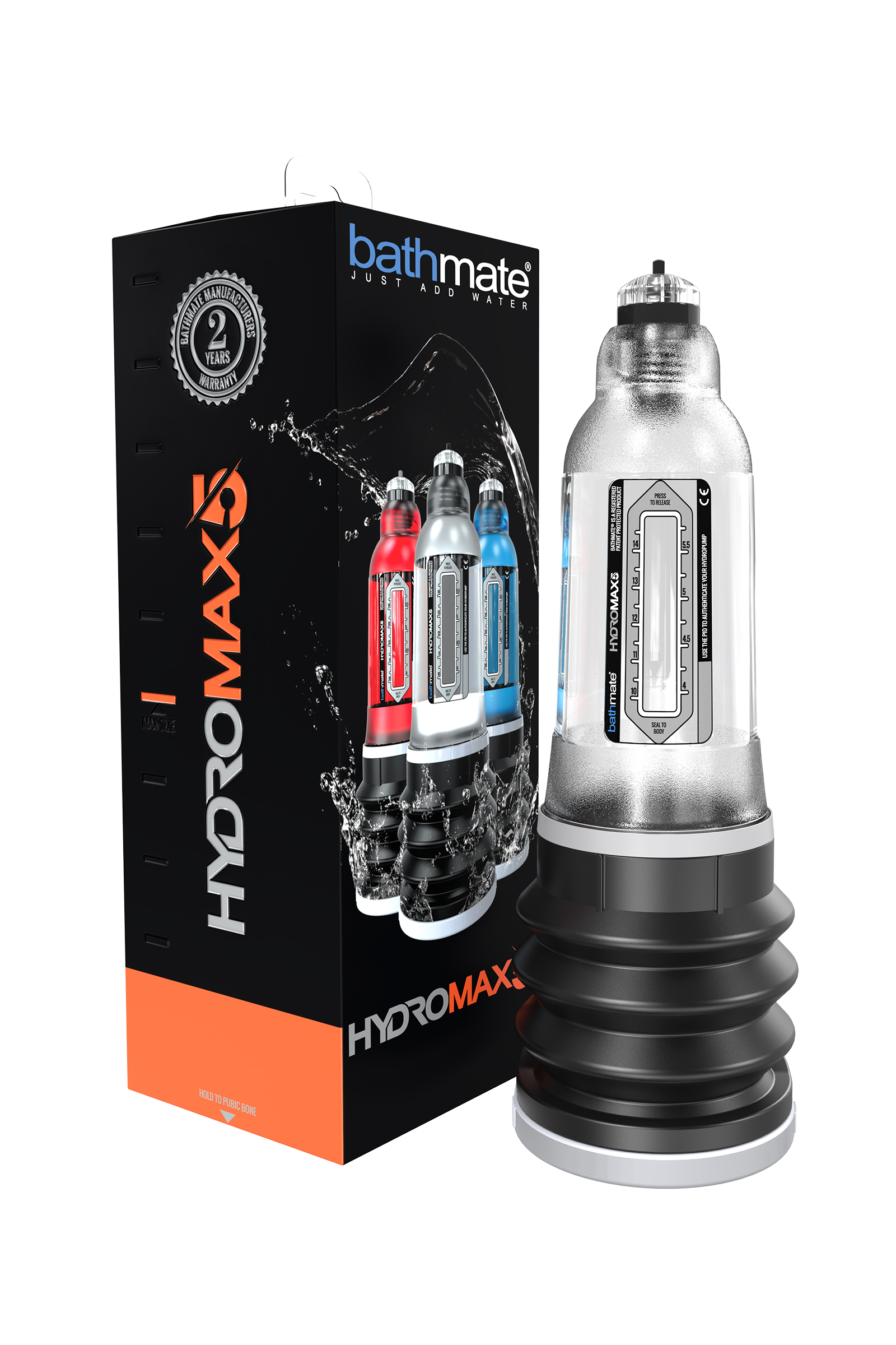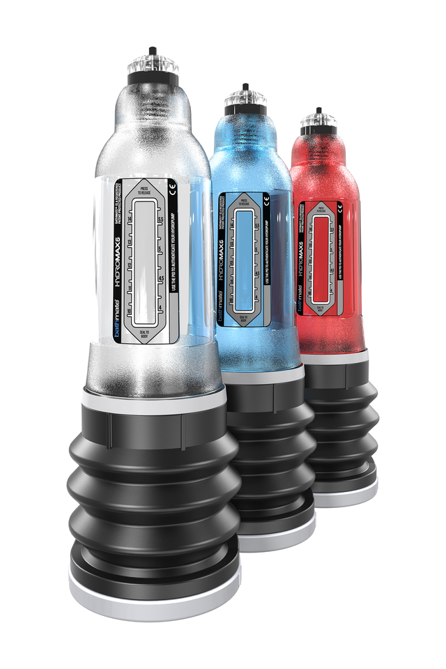 После успеха гидропомпы Hercules возник большой спрос на помпы с увеличенной мощностью. Так появилась серия — Bathmate Hydromax. Эта серия мощнее, быстрее и эффективнее увеличивает член в длину и толщину, тренирует эректильную функцию, повышает сексуальную активность, устраняет преждевременную эякуляцию и улучшает микроциркуляцию крови и тонус сосудов. Что изменилось? Мощность всасывания на 35% сильнее. Увеличенный внутренний размер сифона и уменьшенное уплотнительное кольцо даёт более внушительный обхват. Мягкий уплотнитель (прокладка) обеспечивает плотную поддержку кольцом, пониженное давление и повышенный комфорт вокруг члена. Поворотная колба показывает полноценную картину процесса. Усовершенствованный клапан сброса давления снижает пропускную способность при заполнении устройства водой и удерживает давление в течение более продолжительного времени. Наклонная опция изменения угла оптимизирует результативность.