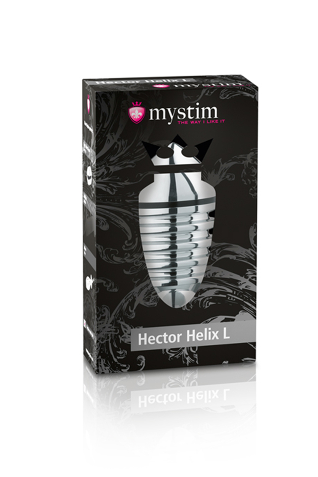 46215 Анальная пробка Mystim Hector Helix L, электростимуляция, хирургическая сталь, серебряная, 11,5 см,