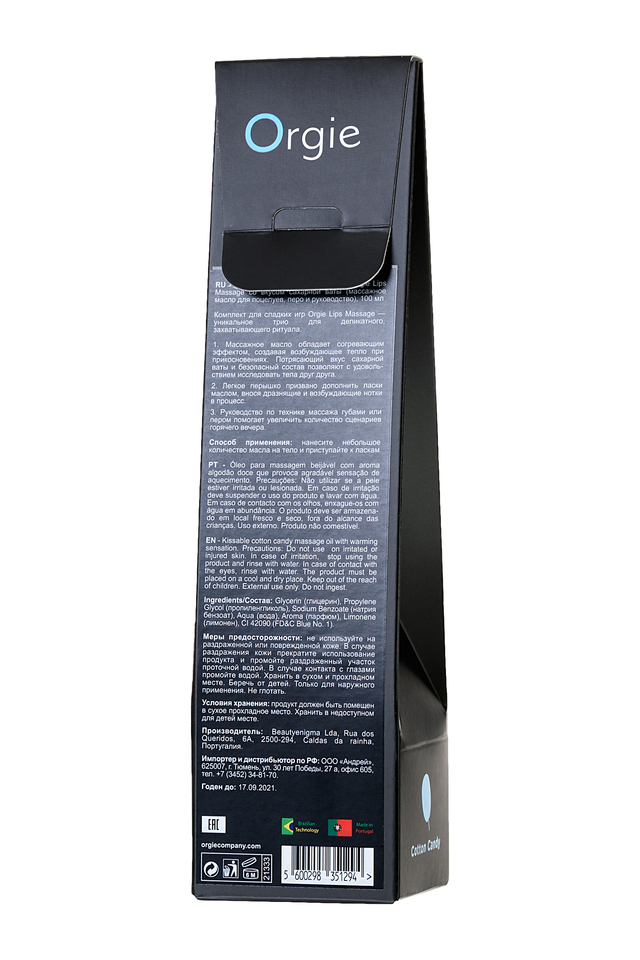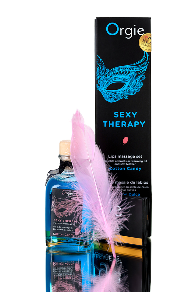21333 Комплект для сладких игр Orgie Lips (массажное масло для поцелуев, перо), сахарная вата, 100 мл