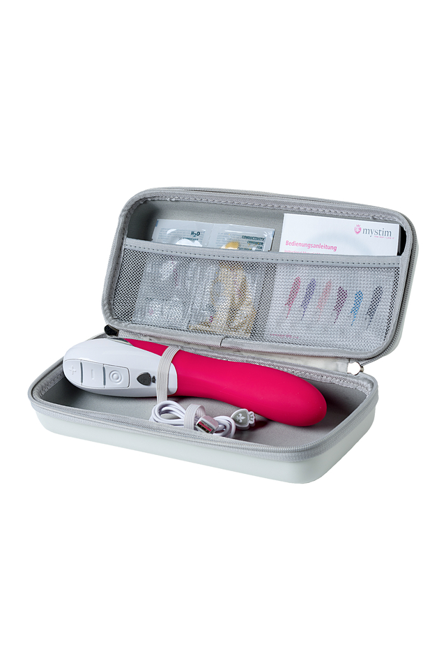 Многофункциональный водонепроницаемый вибратор Mystim Elegant Eric — надежный и понятный девайс для смелых экспериментов. В Mystim Elegant Eric встроены два мотора, которые оснащены 8-ю режимами и 5-ю мощностями вибрации — это в общей сложности сорок сценариев (от дразнящих прелюдий до глобальной встряски эрогенных зон). Водонепроницаемый корпус позволяет игрушке включить пару оргазмов даже в самый тесный график расписаний, например в графу «утренний душ». Управление девайсом продумано и исполнено со всей немецкой педантичностью — удобное расположение кнопок, комфортное использование и понятный интерфейс. Премиальное качество этого вибратора также соответствует самым требовательным пожеланиям — нежное гипоаллергенное силиконовое покрытие, длительная работа без подзарядки и долговечный литий-ионный аккумулятор. Mystim Elegant Eric — эталон сексуальной разрядки, который пора привнести в свою жизнь.