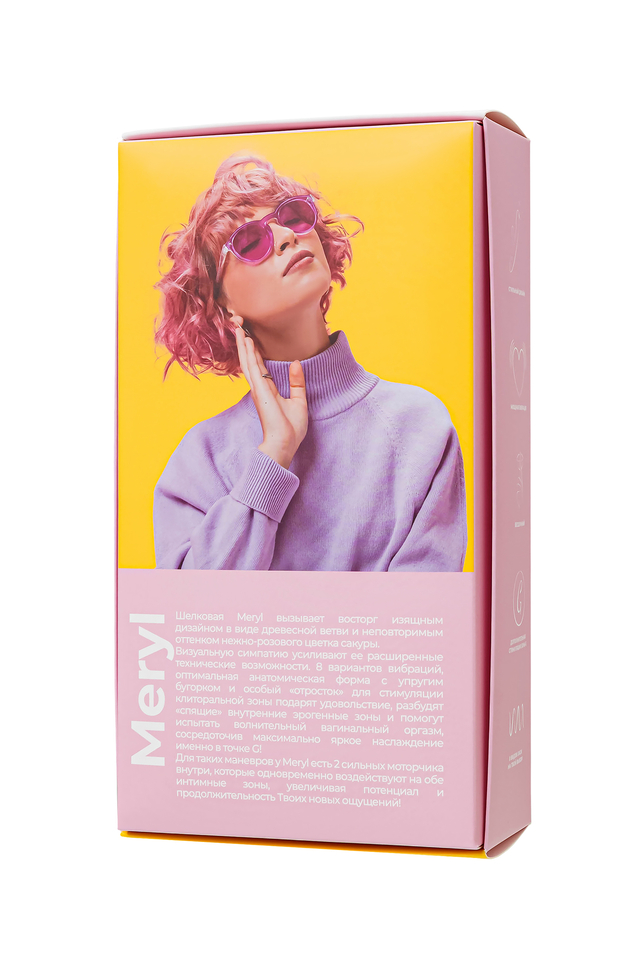 Шёлковая MERYL вызывает восторг изящным дизайном в виде древесной ветви и неповторимым оттенком нежно-розового цветка сакуры. Визуальную симпатию усиливают её расширенные технические возможности. За счёт 8 вариантов вибраций она превосходно справляется с массажем мышц тела, снимает усталость и напряжение, возвращая им расслабленность и спокойствие. Анатомическая форма секс-игрушки с упругим бугорком и особый «отросток» для стимуляции клиторальной зоны подарят удовольствие интимным мышцам, разбудят «спящие» внутренние эрогенные точки и помогут испытать вагинальный оргазм, сосредоточив максимально яркое наслаждение именно в точке G! Для таких манёвров у MERYL есть 2 сильных моторчика внутри, которые одновременно воздействуют на обе интимные зоны, увеличивая потенциал и продолжительность Твоих новых ощущений!