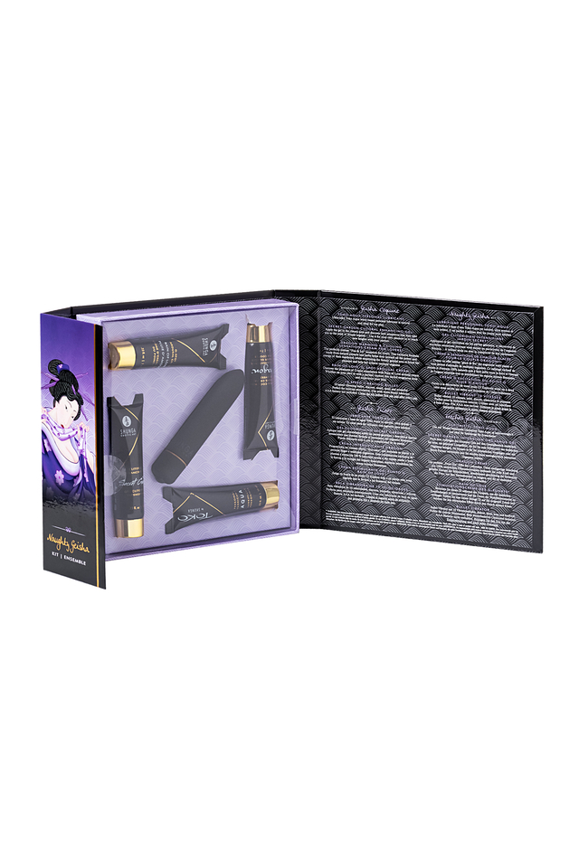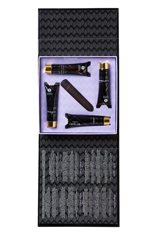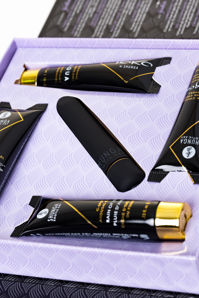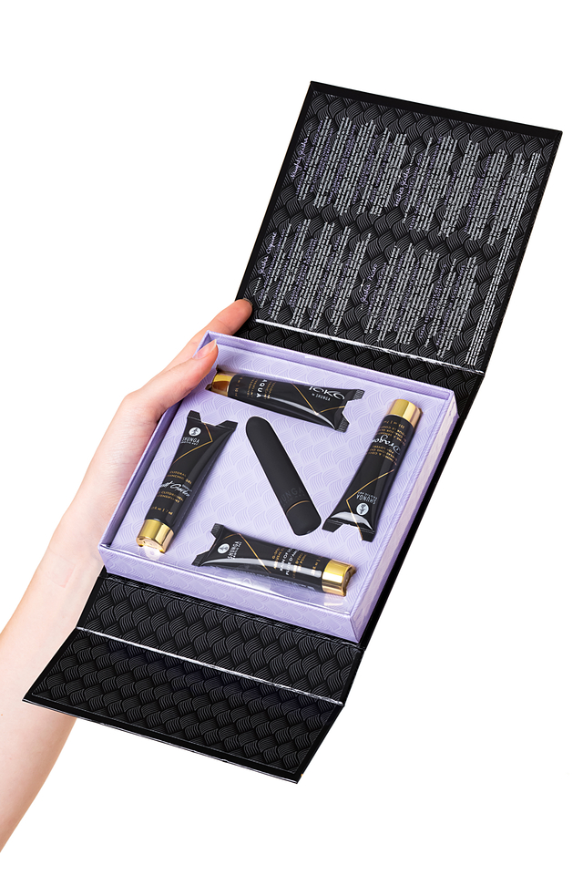 В набор входит: • Лубрикант на водной основе - 10 мл • Возбуждающий крем для женщин SECRET GARDEN (Тайный сад), 7 мл • Крем DRAGON (Дракон) - 7 мл • Крем для стимуляции точки G RAIN OF LOVE (Дождь любви), 7 мл • 10-скоростная вибропуля, (Батарейки ААА не входят в комплект) Коллекция миниатюрных продуктов поможет вам изучить и разбить все табу. Ничто так ни разжигает желания как интерес исследовать жажду вашего тела или жажду тела вашего любовника. Идеально подходит для вашей сексуальной жизни, в качестве подарка или прекрасного начала для исследования продукции Shunga.