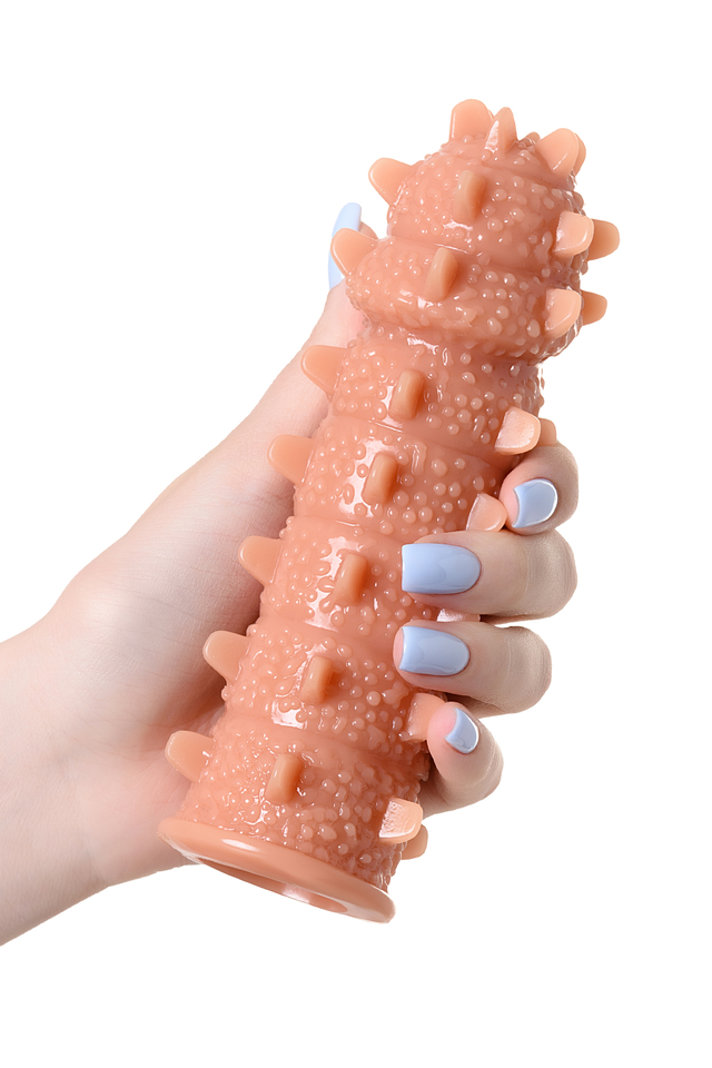 Увеличивающая насадка KOKOS Extreme Sleeve 04 с впечатляющей дополнительной стимуляцией решает сразу 3 задачи: дарит удовольствие обоим партнерам, позволяет экспериментировать с секс-игрушками и выводит интимную жизнь на более высокий уровень. Желанное разнообразие. Насадка придает члену внушительный объем и новую форму, поэтому как нельзя лучше подходит для сценариев «Секс с незнакомцем». При этом выразительный рельеф с выпуклыми точками и шипами привносит незабываемый эффект новизны в ощущения партнерши. Зашкаливающее удовольствие для двоих. В то время как женщина испытывает потрясающее чувство наполненности и получает интенсивную стимуляцию стенок влагалища, мужчина наслаждается более продолжительным половым актом и возбуждающими оргазмами партнерши. Яркие эксперименты. Киберкожа прекрасно передает всю мощность вибраций, поэтому насадку можно использовать не только с партнером, но и с любимым вибратором. Вы также оцените: как KOKOS Extreme Sleeve 04 превосходно тянется и легко надевается на член, обеспечивая при этом плотное и комфортное прилегание как KOKOS Extreme Sleeve 04 быстро принимает температуру тела и насколько он приятен на ощупь как KOKOS Extreme Sleeve 04 долго сохраняет первоначальный вид при соблюдении простых правил — использование лубрикантов на водной основе и хранение в индивидуальной упаковке в прохладном темном месте Увеличивающая насадка KOKOS Extreme Sleeve 04 подарит ощущения, которых у вас еще не было.