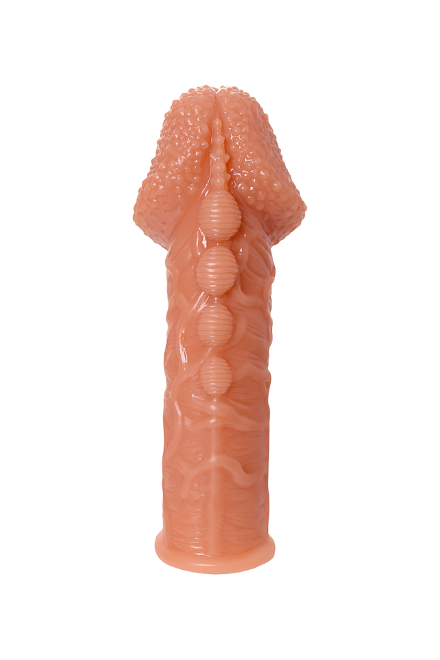 Увеличивающая насадка KOKOS Extreme Sleeve 09 с впечатляющей дополнительной стимуляцией решает сразу 3 задачи: дарит удовольствие обоим партнерам, позволяет экспериментировать с секс-игрушками и выводит интимную жизнь на более высокий уровень. Желанное разнообразие. Насадка придает члену внушительный объем и новую форму, поэтому как нельзя лучше подходит для сценариев «Секс с незнакомцем». При этом рельеф в виде увеличенной текстурированной головки, венок по всей поверхности и выпуклых бугорков, имитирующих пирсинг, привносит незабываемый эффект новизны в ощущения партнерши. Зашкаливающее удовольствие для двоих. В то время как женщина испытывает потрясающее чувство наполненности и получает интенсивную стимуляцию стенок влагалища, мужчина наслаждается более продолжительным половым актом и возбуждающими оргазмами партнерши. Яркие эксперименты. Киберкожа прекрасно передает всю мощность вибраций, поэтому насадку можно использовать не только с партнером, но и с любимым вибратором. Вы также оцените: как KOKOS Extreme Sleeve 09 превосходно тянется и легко надевается на член, обеспечивая при этом плотное и комфортное прилегание как KOKOS Extreme Sleeve 09 быстро принимает температуру тела и насколько он приятен на ощупь как KOKOS Extreme Sleeve 09 долго сохраняет первоначальный вид при соблюдении простых правил — использование лубрикантов на водной основе и хранение в индивидуальной упаковке в прохладном темном месте Увеличивающая насадка KOKOS Extreme Sleeve 09 подарит ощущения, которых у вас еще не было.