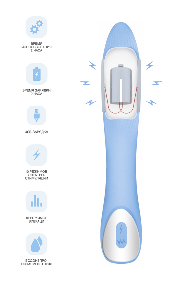 796004 Вибратор с электростимуляцией PHYSICS TESLA G-POINT, силикон, голубой, 21 см