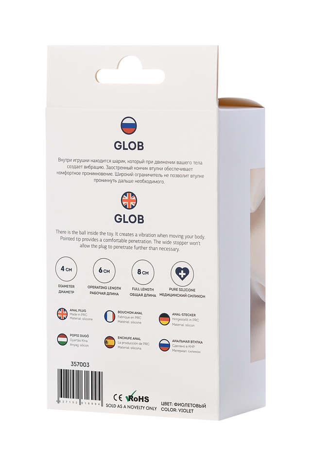 Glob Внутри игрушки находится шарик, который при движении вашего тела создает вибрацию. Заостренный кончик втулки обеспечивает комфортное проникновение. Широкий ограничитель не позволит втулке проникнуть дальше необходимого.