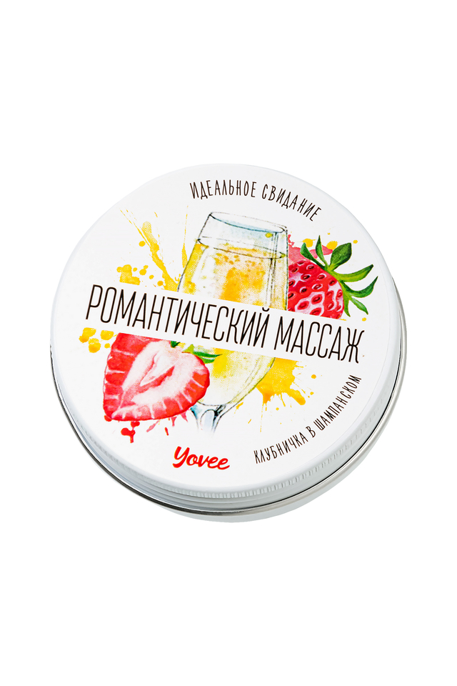 Погрузитесь в жаркую атмосферу с массажной спа-свечой Yovee «Романтический массаж» клубника и шампанское! Нежный фруктовый аромат создаст игривое настроение, а теплое масло сделает ваш массаж нежным и расслабляющим. Как использовать? Просто зажгите свечу, когда нужное количество масла растает – погасите, подождите 1-2 секунды, пока масло остынет. Затем аккуратно перелейте растопленное масло на ладонь или тело и массируйте кожу. Изготовлена из 100% натуральных компонентов, которые питают, увлажняют и смягчают кожу. Основа свечи - соевое масло, которое смешивается с уходовыми маслами, а при комнатной температуре приобретает плотность воска. При горении свечи твердый воск расплавляется в тёплое массажное масло, не обжигает кожу. Пальмовое масло помогает справиться с авитаминозом кожи, дарит приятное увлажнение и свежесть, смягчает огрубевшую и шелушащуюся кожу, помогает справиться с возрастными изменениями. Кокосовое масло придает коже бархатистость, защищает, смягчает, разглаживает. Масло виноградной косточки повышает тургор, эластичность и упругость кожи, стимулирует выработку коллагена и эластина, ускоряет процесс регенерации кожного покрова. Массажные свечи Yovee – это идеальный способ побаловать себя домашним спа-ритуалом и создать атмосферу умиротворения и желания. Благодаря дизайну упаковки свеча отлично подходит в виде подарка. Предназначена для наружного применения. Не содержит парафина. Не подходит для ароматизации помещения, использования в качестве лубриканта.