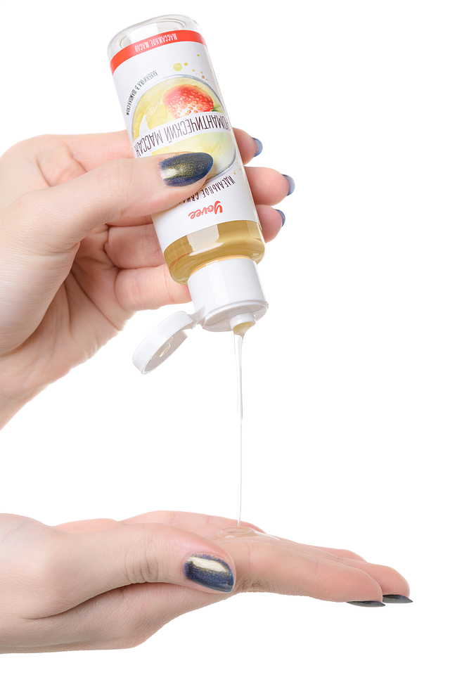 Натуральные масла в составе сделают массаж не только насыщенным и чувственным, но и полезным для вашей кожи. Отлично скользит и смывается водой. Праздничный аромат клубнички в шампанском с лёгкостью расслабит и подготовит вас к чувственному массажу. Подготовьтесь к свиданию: После приёма расслабляющей ванны побалуйте себя ароматным массажем. Налейте масло в ладони и лёгкими массажными движениями массируйте своё тело. Освежающий аромат и натуральные масла в составе сделают вашу кожу приятной и мягкой. Применение: Налейте масло в ладони и немного разотрите в руках. Мягкими и плавными движениями массируйте тело. Не рекомендуется в качестве персонального лубриканта.