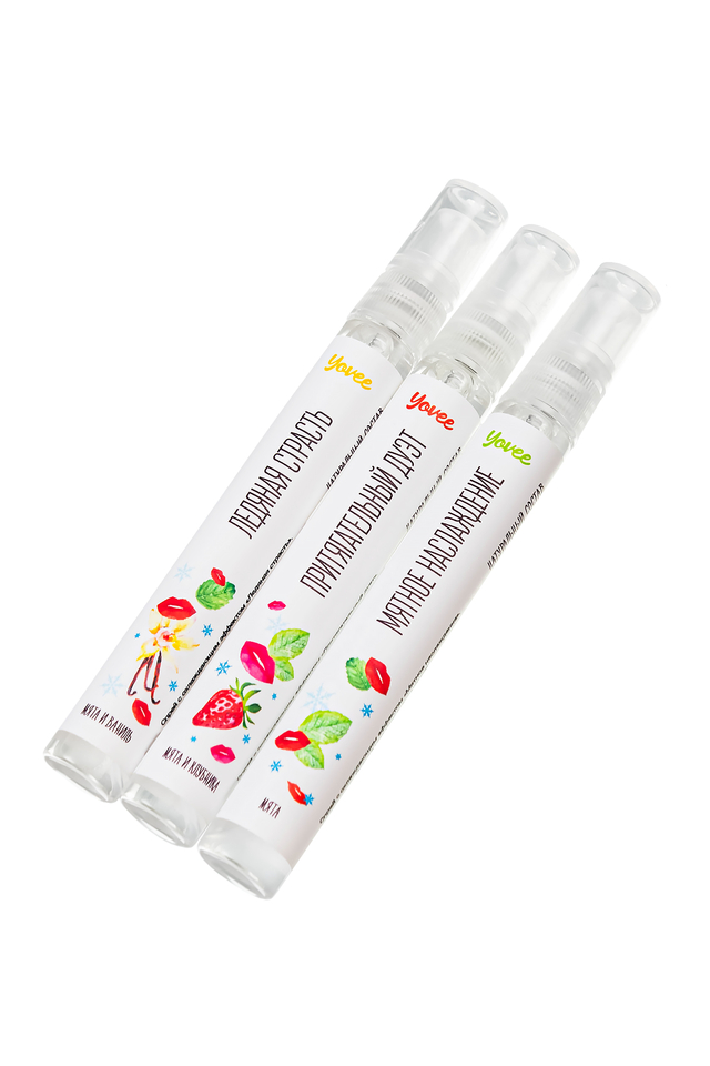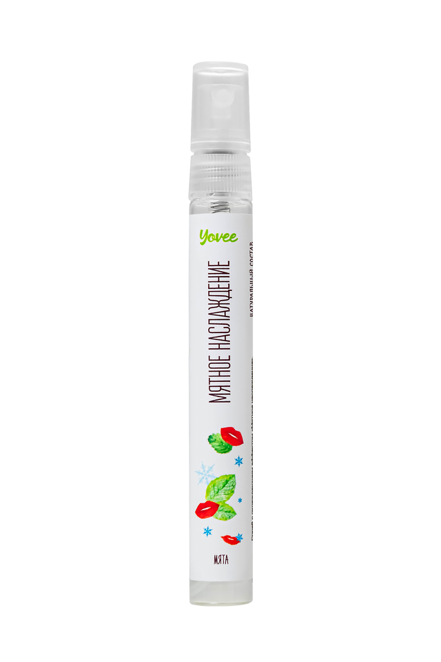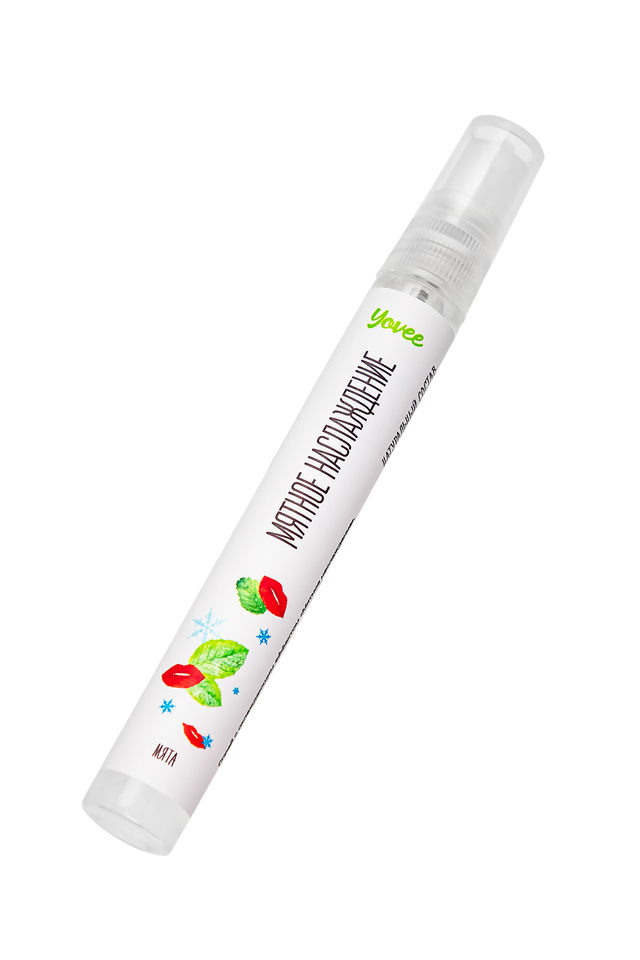 Обладая восхитительным мягким мятным вкусом и приятным охлаждающим эффектом спрей Yovee «Мятное наслаждение» усиливает удовольствие от секса и добавляет в интимную игру пикантные ноты. Применение спрея притупляет рвотный рефлекс и помогает освоить технику "глубокая глотка". Также спрей можно использовать для усиления чувствительности нервных окончаний сосков. Под воздействием активных компонентов восприимчивость эрогенных зон станет выше, а ласки еще более приятными. Распылять средство нужно непосредственно перед оральным сексом. Длительность эффекта зависит от количества нанесенного спрея. Применение: встряхните, распылите 2-3 дозы и подождите несколько секунд, чтобы почувствовать эффект. Освежает дыхание Усиливает слюноотделение Оказывает охлаждающее и возбуждающее воздействие Нейтрализует рвотный рефлекс, помогает применить технику "глубокая глотка" Дарит новые ощущения Активные ингредиенты: Ментол - основной компонент эфирного масла, содержащегося в листьях мяты перечной. Избирательно раздражая холодовые рецепторы, вызывает ощущение холода, жжения, покалывания с последующим небольшим понижением чувствительности. Эфирное масло эвкалипта - афродизиак мягкого действия. Повышает сексуальную энергию, вселяет уверенность, придает силы, восстанавливает утраченные силы. Благодаря свойству эвкалиптового масла подавлять канцерогенные оральные бактерии, его часто используют в средствах для освежения дыхания и оздоровления полости рта.