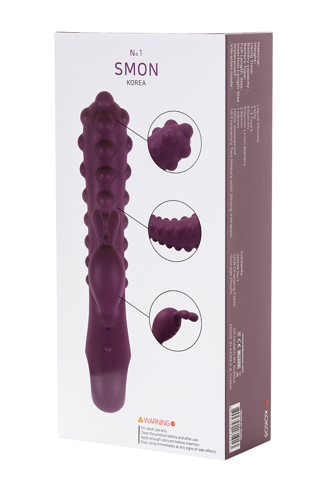 Супермощный нереалистичный вибратор с клиторальной стимуляцией Kokos Smon №1 славится своей способностью доводить до оргазма за считанные минуты. Как ему это удается? Давайте посмотрим: Его ствол украшен 33-я бусинами разного диаметра, которые во время стимуляции задействуют сотни нервных окончаний, — это приводит к бурной разрядке даже без включения вибрации. Слегка изогнутая головка безошибочно находит точку G и активно массирует ее, что накаляет возбуждение до предела. Клиторальный отросток с шаловливыми «пальчиками» искусно ласкает клитор и половые губы, не оставляя вам шанса остаться без оргазма. 10 режимов вибрации рисуют захватывающие сценарии игры — от деликатного интимного массажа и дразнящих пульсаций до стремительного финала с ярким акцентом в виде неутихающей дрожи в коленях. Полная водонепроницаемость предлагает испытать совершенно новые ощущения в душе или теплой расслабляющей ванне. Эргономичная ручка-кольцо обеспечивает комфортное использование в желанных для вас позах. Емкая батарея гарантирует до 3-х часов непрерывной работы девайса. Чтобы гипоаллергенная силиконовая игрушка не теряла свои свойства, выбирайте лубриканты на водной основе. Тщательно очищайте вибратор после применения. Храните девайс в прохладном темном месте в индивидуальной упаковке. Kokos Smon №1 — первый в списке удовольствий