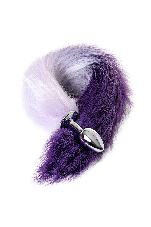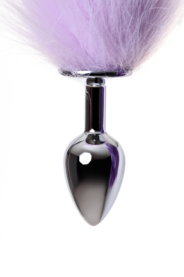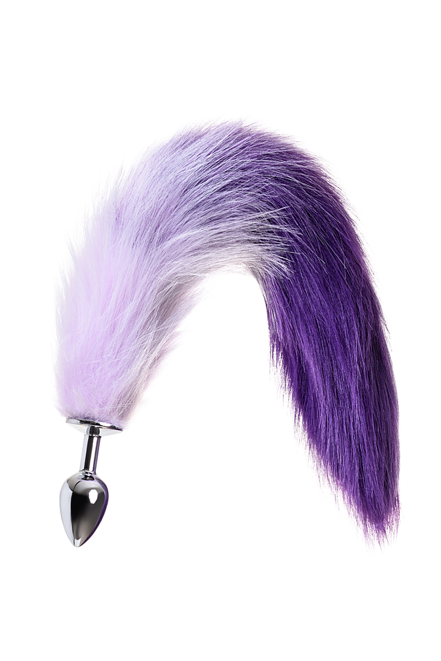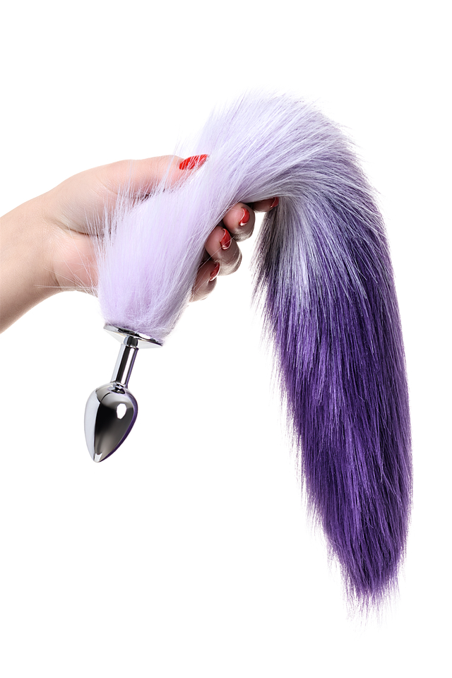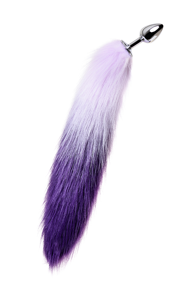 712027-S Анальная втулка Metal by TOYFA с бело-фиолетовым хвостом, металл, серебряная, 45 см, Ø 2,7 см
