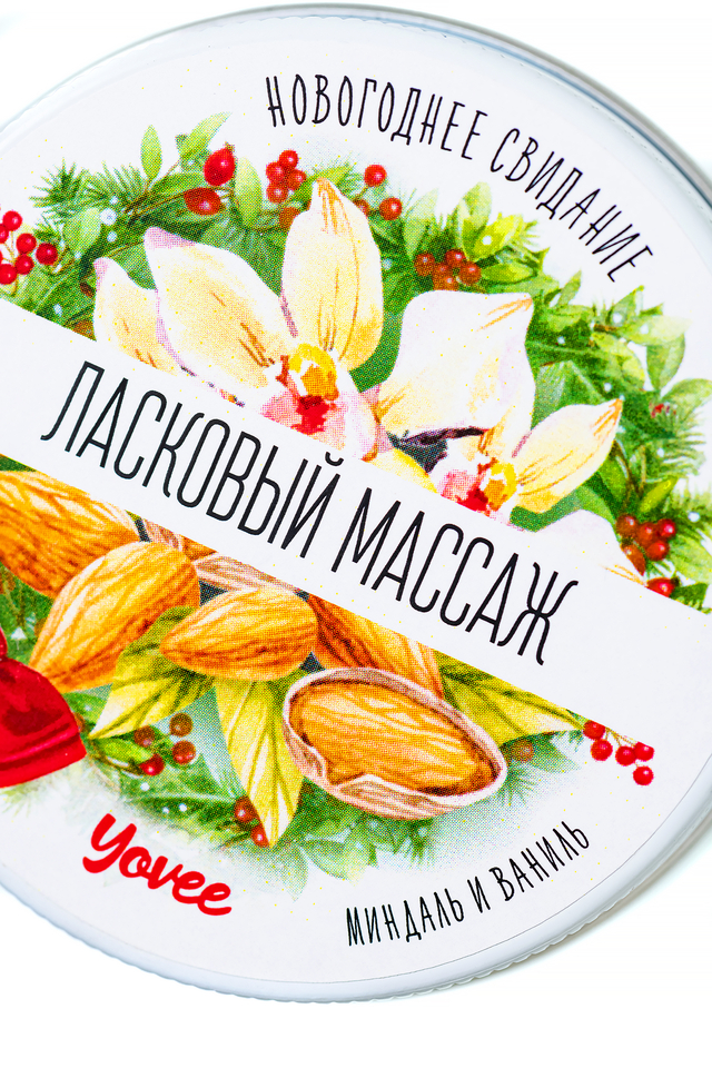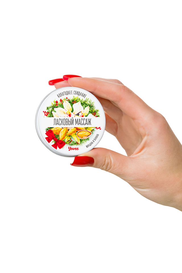 Массажная свеча Yovee «Ласковый массаж» с ароматом «Миндаль и ваниль» - изысканный аксессуар для новогоднего свидания. Изготовлена из 100% натуральных масел, которые питают, увлажняют, смягчают кожу и делают её шелковистой. Ненавязчивый сладкий аромат миндаля и ванили остается легким шлейфом, напоминая о проведенных минутах блаженства. Благодаря праздничному дизайну упаковки свеча отлично подходит в качестве презента. Основа свечи - гидрогенизированное соевое масло, которое идеально смешивается с уходовыми маслами и отдушкой, а при комнатной температуре приобретает плотность воска. При горении свечи твердый воск расплавляется в тёплое массажное масло, не обжигающее кожу. Уходовые масла: пальмовое, кокосовое и масло виноградной косточки - многофункциональны. Пальмовое масло помогает справиться с авитаминозом кожи, дарит приятное увлажнение и свежесть, смягчает огрубевшую и шелушащуюся кожу, помогает справиться с возрастными изменениями. Кокосовое масло придает коже бархатистость, защищает, смягчает, разглаживает. Масло виноградной косточки повышает тургор, эластичность и упругость кожи, стимулирует выработку коллагена и эластина, ускоряет процесс регенерации кожного покрова. Сладкая парфюмированая отдушка добавит приятных ощущений при использовании. Предназначена для наружного применения. Не содержит парафина. Не подходит для ароматизации помещения, использования в качестве лубриканта. Применение: зажгите свечу до массажа, когда образуется достаточное количество масла, потушите её. Проверьте температуру масла на внутренней стороне ладони, при необходимости дайте маслу слегка остыть. Нанесите на тело и массирующими движениями распределите по телу. Наслаждайтесь тонким ароматом и бархатной кожей!