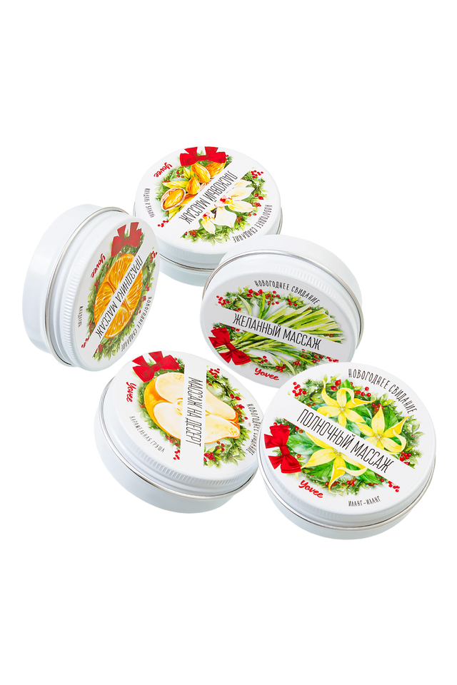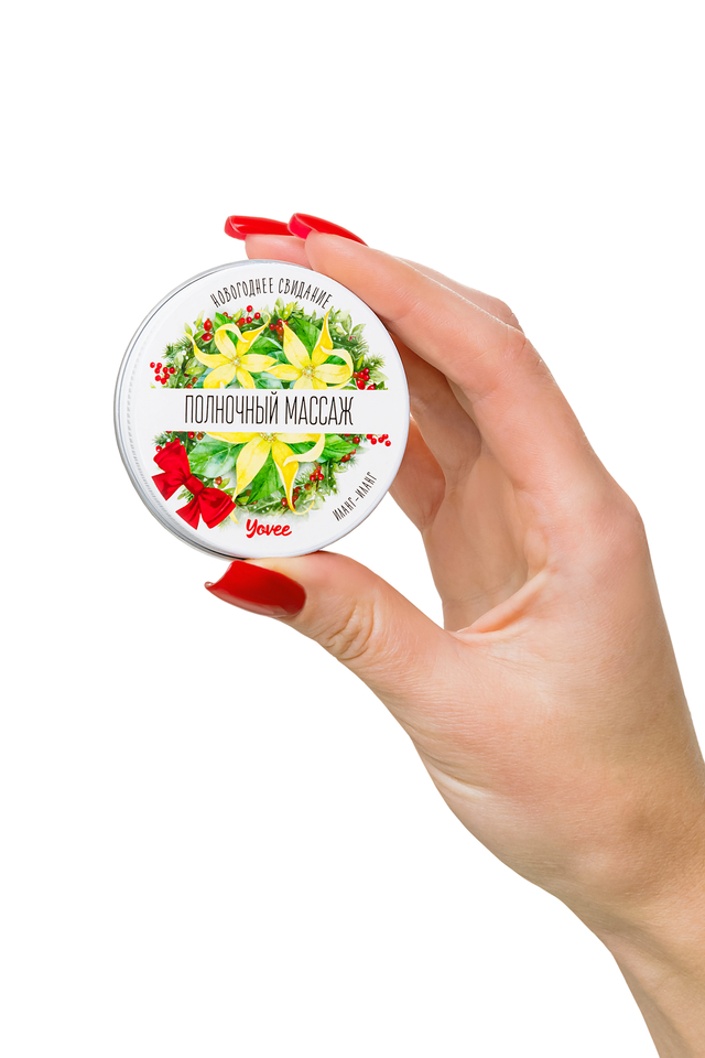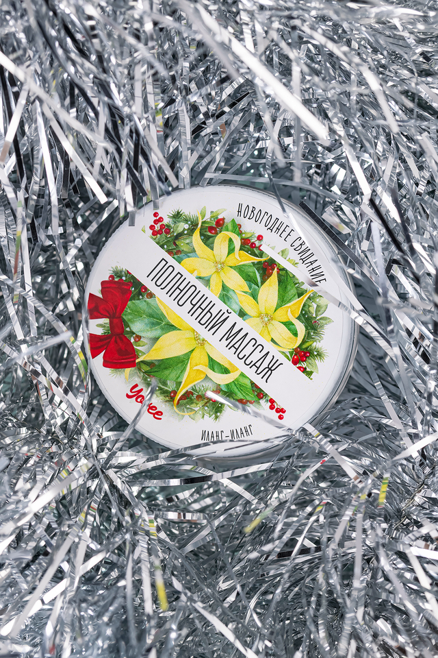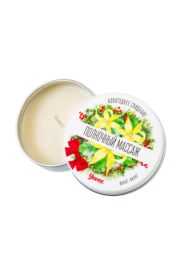 Массажная свеча Yovee «Полночный массаж» с афродизиаком «Иланг-иланг» - изысканный аксессуар для новогоднего свидания. Изготовлена из 100% натуральных масел, которые питают, увлажняют, смягчают кожу и делают её шелковистой. Ненавязчивый пряный аромат остается легким шлейфом, напоминая о проведенных минутах блаженства. Благодаря праздничному дизайну упаковки свеча отлично подходит в качестве презента. Основа свечи - гидрогенизированное соевое масло, которое идеально смешивается с уходовыми и эфирным маслами, а при комнатной температуре приобретает плотность воска. При горении свечи твердый воск расплавляется в тёплое массажное масло, не обжигающее кожу. Уходовые масла: пальмовое, кокосовое и масло виноградной косточки - многофункциональны. Пальмовое масло помогает справиться с авитаминозом кожи, дарит приятное увлажнение и свежесть, смягчает огрубевшую и шелушащуюся кожу, помогает справиться с возрастными изменениями. Кокосовое масло придает коже бархатистость, защищает, смягчает, разглаживает. Масло виноградной косточки повышает тургор, эластичность и упругость кожи, стимулирует выработку коллагена и эластина, ускоряет процесс регенерации кожного покрова. Эфирное масло иланг-иланг выступает не только ухаживающим компонентом, но и афродизиаком. Нежный пряный аромат расслабляет и поднимает настроение. Предназначена для наружного применения. Не содержит парафина. Не подходит для ароматизации помещения, использования в качестве лубриканта. Применение: зажгите свечу до массажа, когда образуется достаточное количество масла, потушите её. Проверьте температуру масла на внутренней стороне ладони, при необходимости дайте маслу слегка остыть. Нанесите на тело и массирующими движениями распределите по телу. Наслаждайтесь тонким ароматом и бархатной кожей!