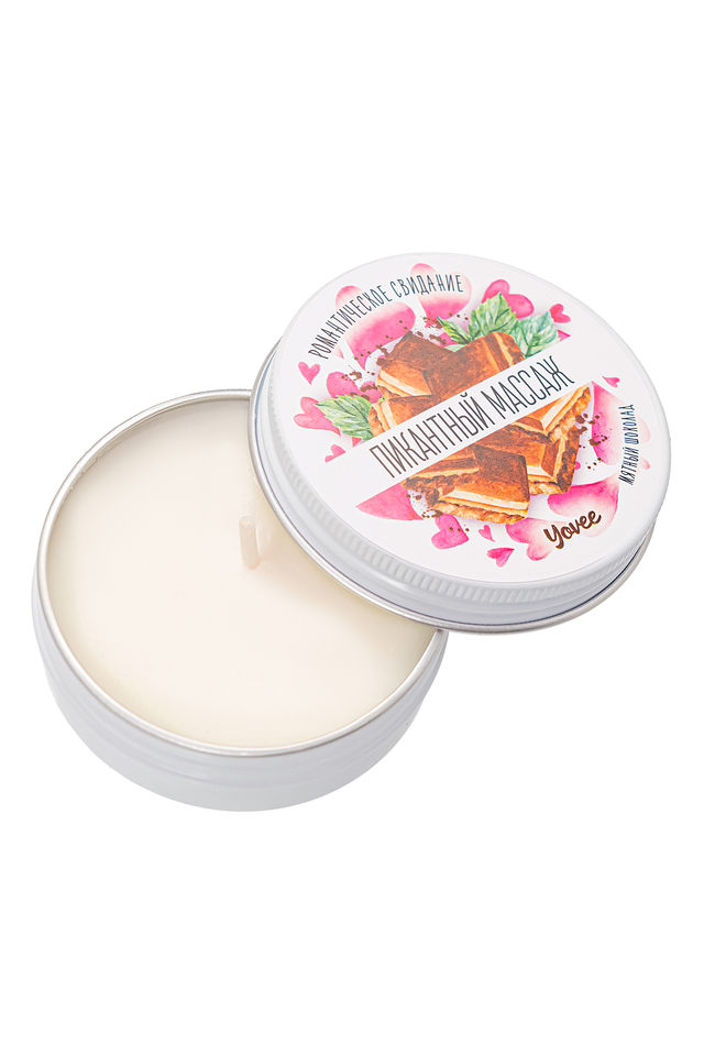 Массажная свеча Yovee «Пикантный массаж» с эфирным маслом, с ароматом «Мятный шоколад» - изысканный аксессуар для романтического свидания. Изготовлена из натуральных масел, которые питают, увлажняют, смягчают кожу и делают её шелковистой. Сладкий аромат с ментоловым оттенком остается легким шлейфом, напоминая о проведенных минутах блаженства. Благодаря праздничному дизайну упаковки свеча отлично подходит в качестве презента. Основа свечи - гидрогенизированное соевое масло, которое идеально смешивается с уходовыми, эфирным маслами и отдушкой, а при комнатной температуре приобретает плотность воска. При горении свечи твердый воск расплавляется в тёплое массажное масло, не обжигающее кожу. Уходовые масла: пальмовое, кокосовое и масло виноградной косточки - многофункциональны. Пальмовое масло помогает справиться с авитаминозом кожи, дарит приятное увлажнение и свежесть, смягчает огрубевшую и шелушащуюся кожу, помогает справиться с возрастными изменениями. Кокосовое масло придает коже бархатистость, защищает, смягчает, разглаживает. Масло виноградной косточки повышает тургор, эластичность и упругость кожи, стимулирует выработку коллагена и эластина, ускоряет процесс регенерации кожного покрова. Сладкая косметическая отдушка добавит приятных ощущений при использовании. Эфирное масло мяты помогает справиться с эмоциональным истощением, снять усталость, нервозность и напряжение, успокоиться и наладить сон. Предназначена для наружного применения. Не содержит парафина. Не подходит для ароматизации помещения, использования в качестве лубриканта. Применение: зажгите свечу до массажа, когда образуется достаточное количество масла, потушите её. Проверьте температуру на внутренней стороне ладони, при необходимости дайте маслу слегка остыть. Нанесите на тело и массирующими движениями распределите. Наслаждайтесь тонким ароматом и бархатной кожей!