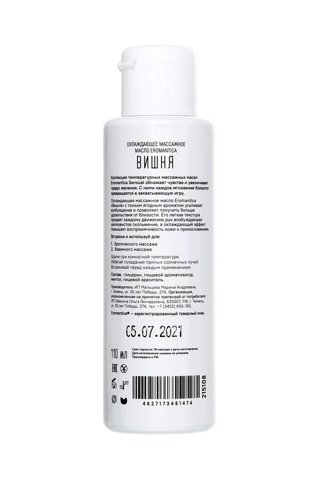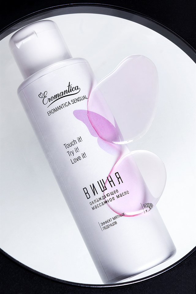 Коллекция температурных массажных масел Eromantica Sensual обнажает чувства и увеличивает градус желания. С ними каждое мгновение близости превращается в захватывающую игру. Охлаждающее массажное масло Eromantica «Вишня» с тонким ягодным ароматом усиливает возбуждение и позволяет получить больше удовольствия от близости. Его легкая текстура придает каждому движению рук возбуждающее шелковистое скольжение, а охлаждающий эффект повышает восприимчивость кожи к прикосновениям. Сладкий вкус без горького послевкусия делает оральные ласки еще приятней и побуждает к исследованию тела партнера. Встряхни и используй для: Эротического массажа: нанеси на чувствительные участки тела или отдельные эрогенные точки. Подуй на них, чтобы партнер ощутил возбуждающий холодок. Взаимного массажа: нанесите масло на эрогенные зоны, заводите друг друга охлаждающим дыханием или взаимными поцелуями. Оральных техник: нанеси небольшое количество масла, чередуй мануальные и оральные ласки. Храни при комнатной температуре. Избегай попадания прямых солнечных лучей. Встряхивай перед каждым применением.