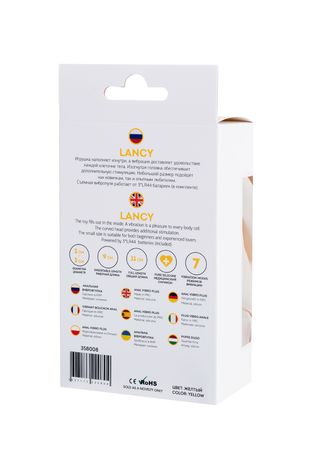 Lancy Игрушка наполняет изнутри, а вибрация доставляет удовольствие каждой клеточке тела. Изогнутая головка обеспечивает дополнительную стимуляцию. Небольшой размер подойдёт как новичкам, так и опытным любителям. Съёмная вибропуля работает от 3×AG13 батареек (в комплекте).