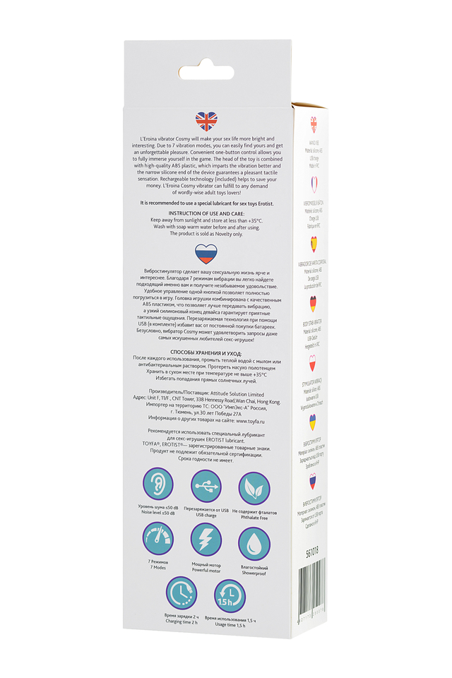 Вибростимулятор сделает вашу сексуальную жизнь ярче и интереснее. Благодаря 7 режимам вибрации вы легко найдете подходящий именно вам и получите незабываемое удовольствие. Удобное управление одной кнопкой позволяет полностью погрузиться в игру. Головка игрушки комбинирована с качественным ABS пластиком, что позволяет лучше передавать вибрацию, а узкий силиконовый конец девайса гарантирует приятные тактильные ощущения. Перезаряжаемая технология при помощи USB (в комплекте) избавит вас от постоянной покупки батареек. Безусловно, вибратор Cosmy может удовлетворить запросы даже самых искушенных любителей секс-игрушек!