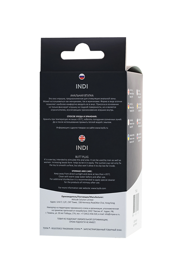 731425 Анальная втулка POPO Pleasure by TOYFA Indi, водонепроницаемая, силикон, черная, 11,5 см, Ø 2,9 см