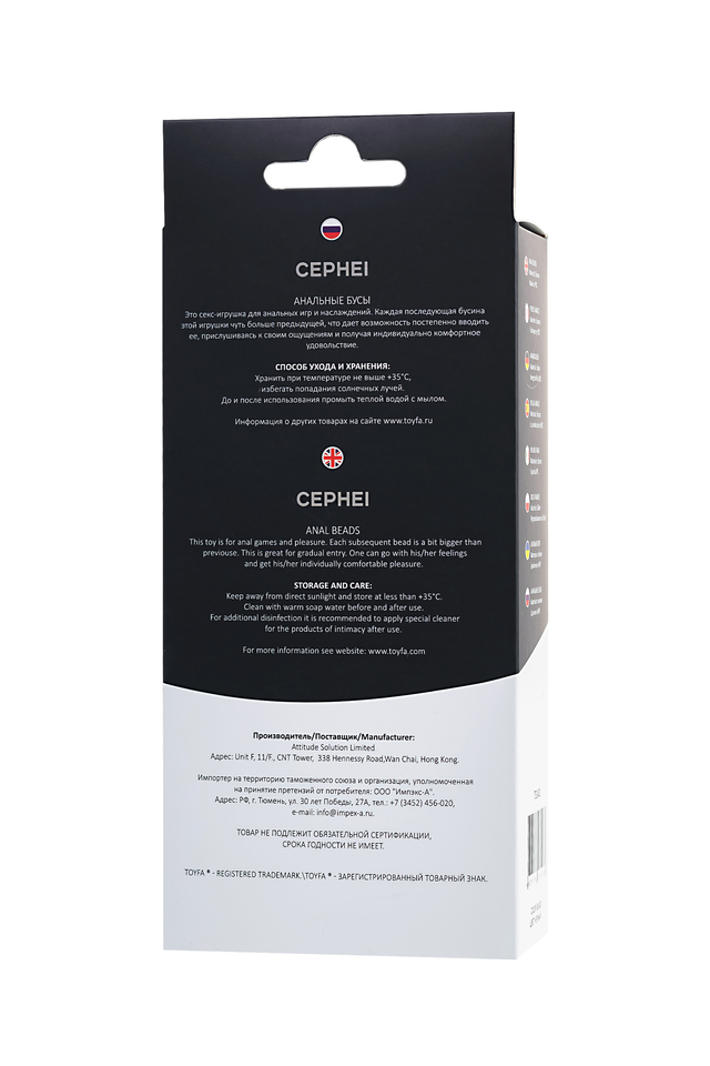 731431 Анальные бусы TOYFA POPO Pleasure Cephei, водонепроницаемые, силикон, черные, 33,5 см, Ø 2,4 см