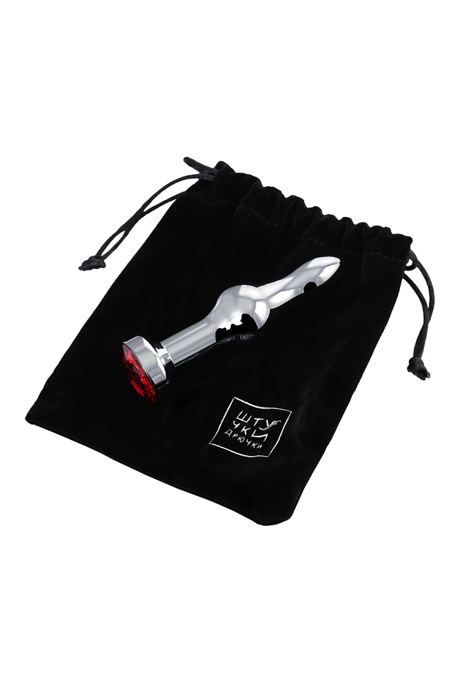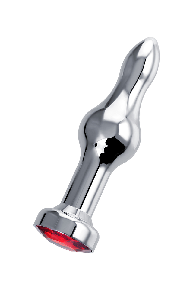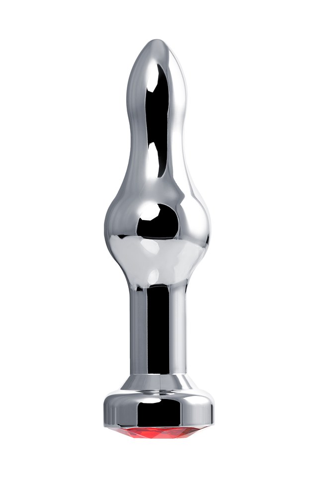 690125 Анальная втулка Штучки-Дрючки, металл, серебряная, с красным кристаллом, 10 см, Ø 2,8 см, 75 г